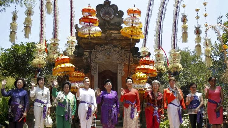而彭丽媛在巴厘穿上纱笼,又赋予了纱笼装端庄、大方的意涵。