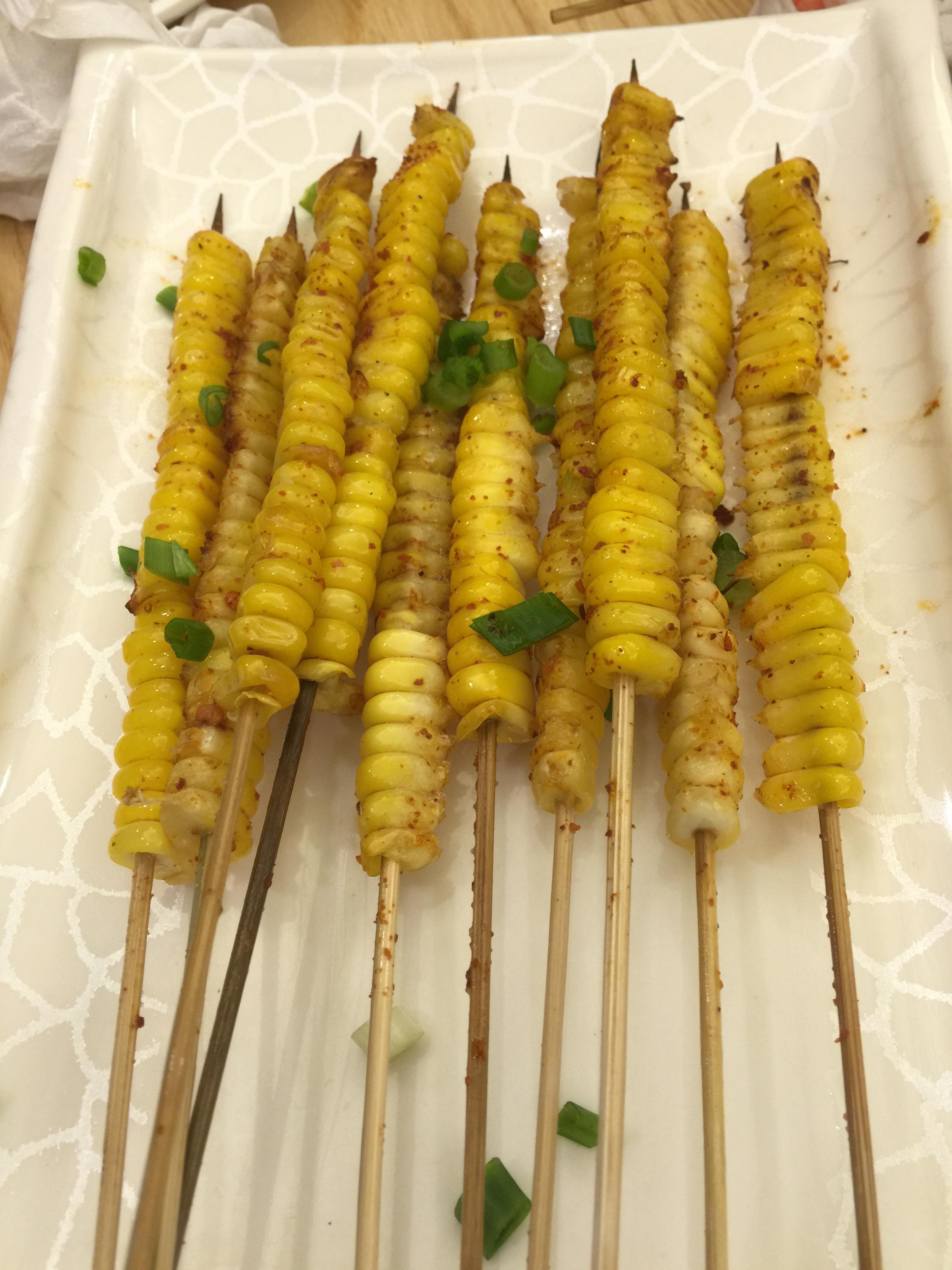 烤玉米串!看其他小伙伴强推这个烤玉米串,我却觉得味道一般般,纯玉米粒串起来看着的确很流弊,但是味道真的普通啊,玉米粒其实没大熟透,有点夹生,而且作料的味道只停留于表面,我给7分吧,感觉只是个噱头。