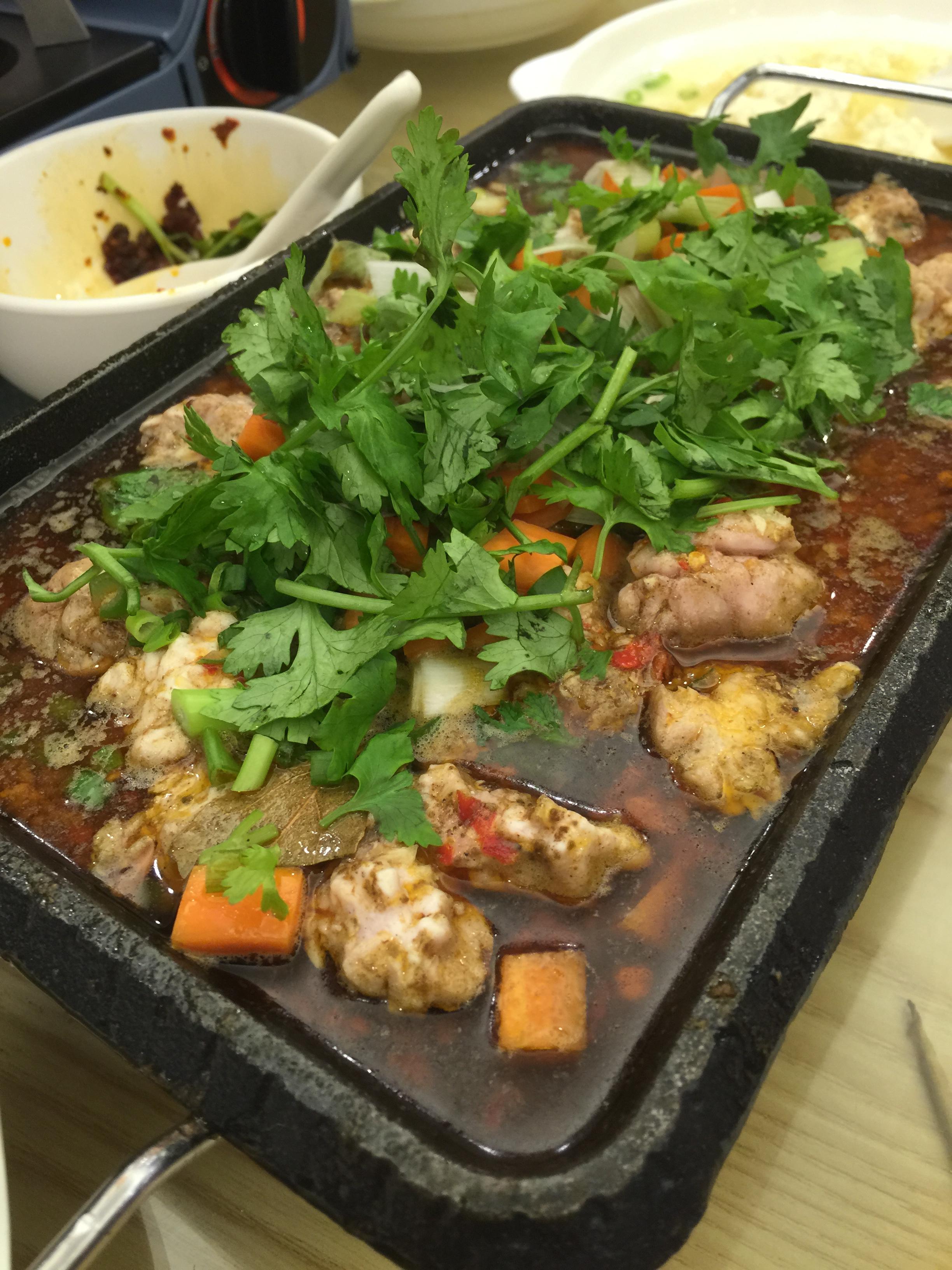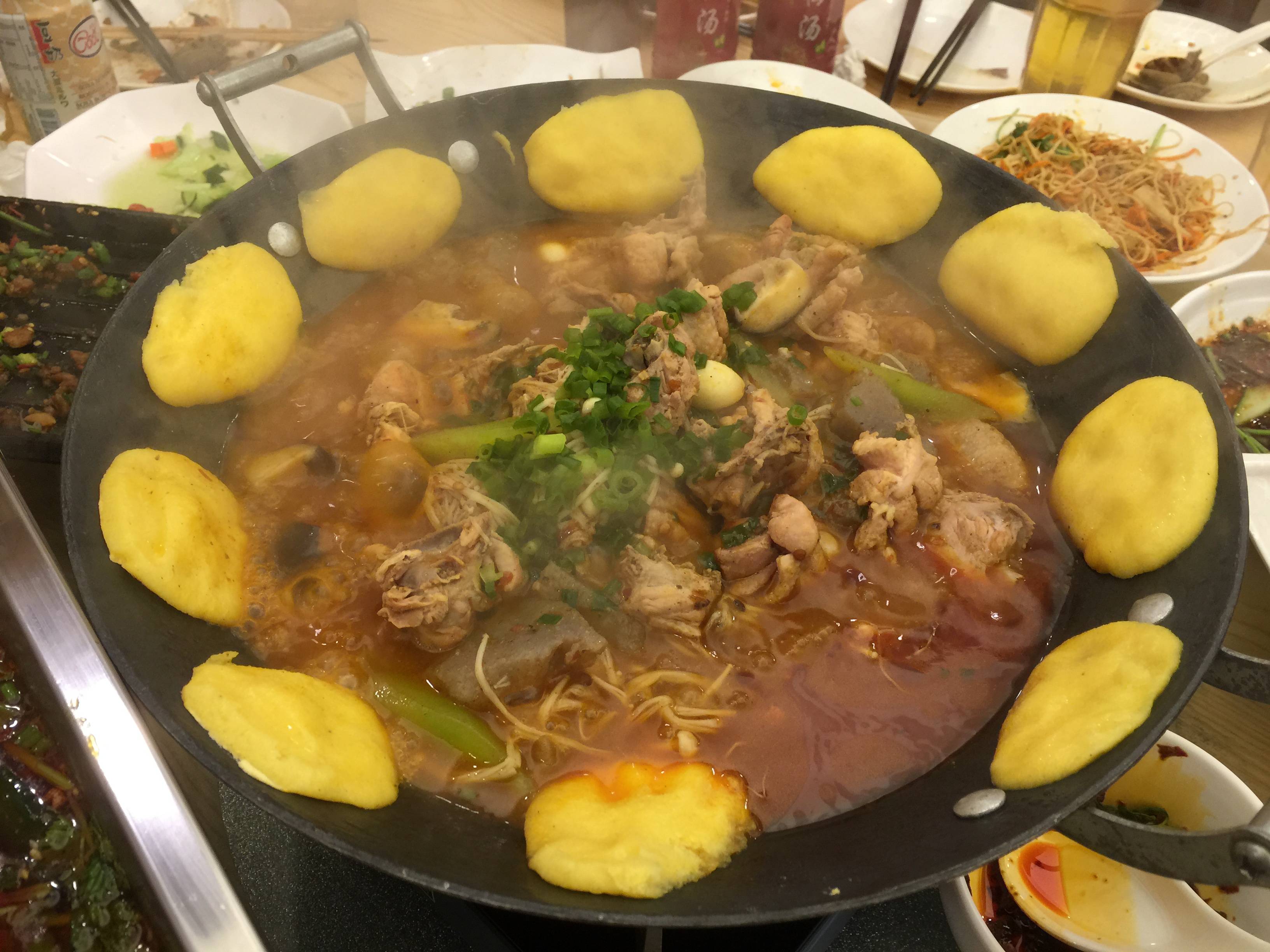嗯嗯,这是我吃到的第一个热菜,锅盖一打开的瞬间热气腾腾,香气扑鼻!果然是一道大菜!鸡肉炖的很香烂,魔芋入味,冬菇酥软,锅壁上的玉米饼子烤的外焦里嫩,沾着汤汁非常美味!唯一的缺点是,玉米饼子给的太少了哎喂,不够分啊,秒没!这道菜我给10分!!量大味美,最满意的一道菜!