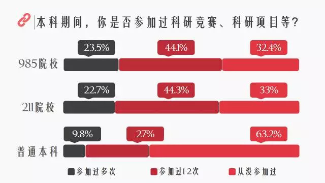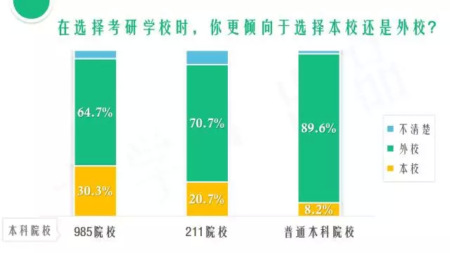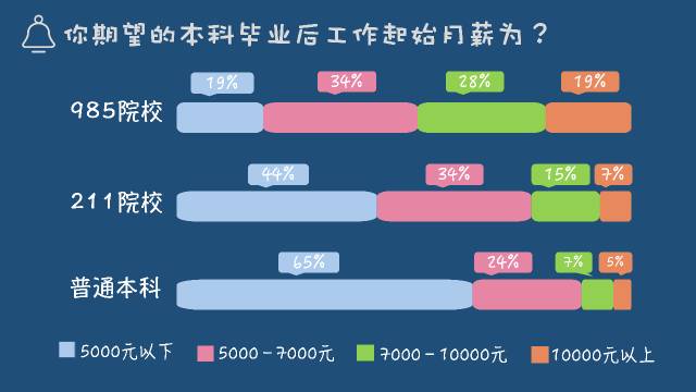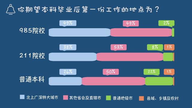 最终上了985和211级别高校的同学,还会选当时一样志愿的比例分别为42.8%和47.8%,明显高于普通本科和普通专科院校学生的28%和31%。