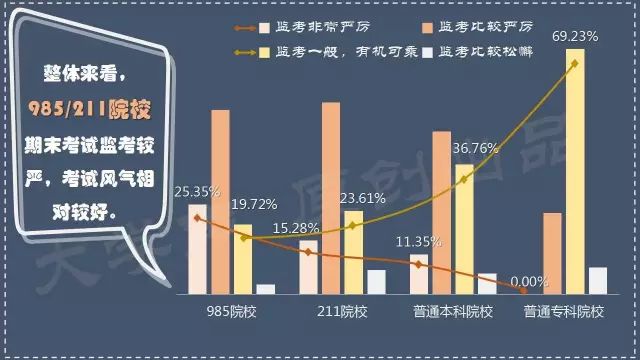985,211高校的监考秩序明细那比一般本科院校要严格,考试风气较好,同时学生对于考试作弊的现象容忍度更低。