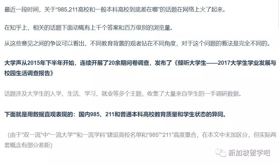 985,211和普通本科的差距有多大?可以申请新加坡公立研究生?