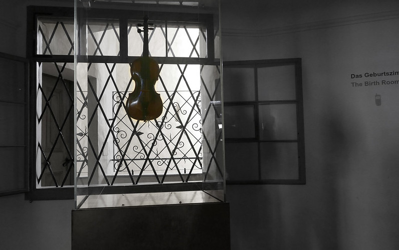 11. 莫扎特出生在这所房子里,四岁开始跟父亲学琴,五岁作曲,(https://en.wikipedia.org/wiki/Wolfgang_Amadeus_Mozart)。这是他当时拉的小提琴。