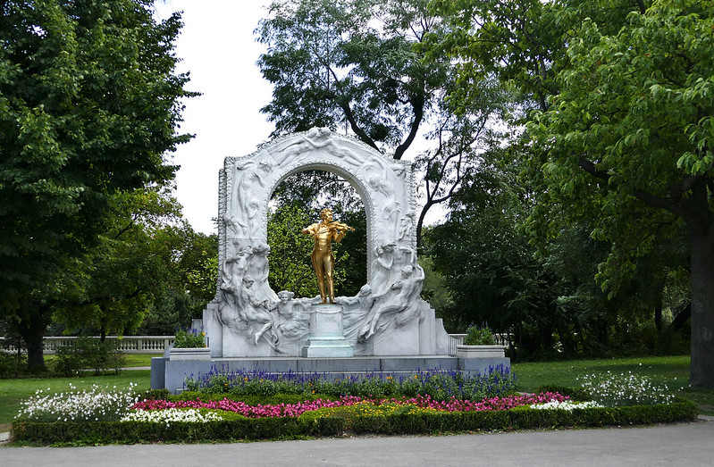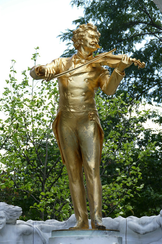 16. 除了莫扎特,以多瑙河华尔兹闻名的施特劳斯父子们也是奥地利的骄傲。这是Stadtpark 公园里的Strauss金像。父亲施特劳斯去世时45岁。