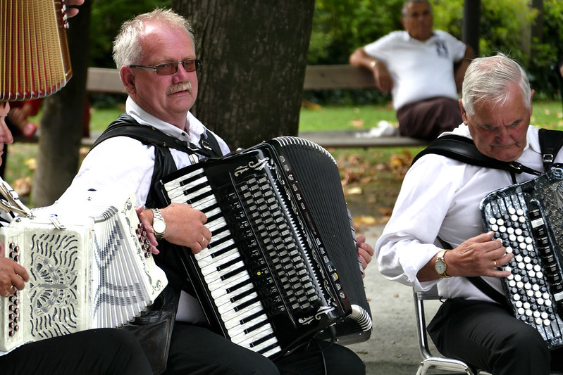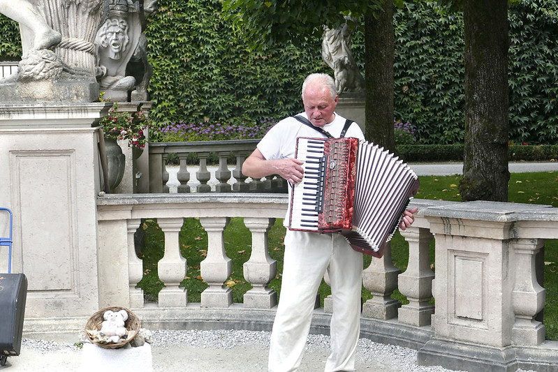 26. Schloss Mirabell 宫前,一群退休人士拉集体手风琴。
