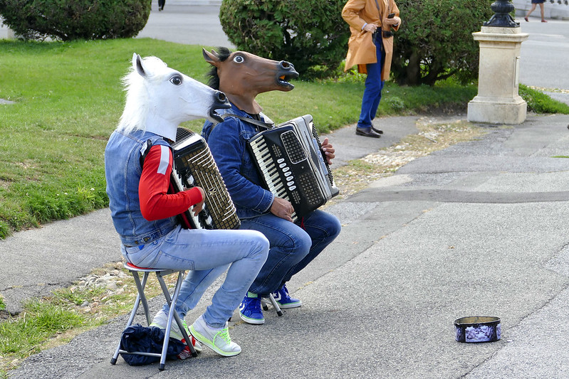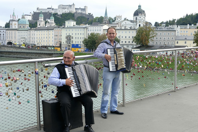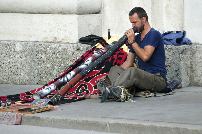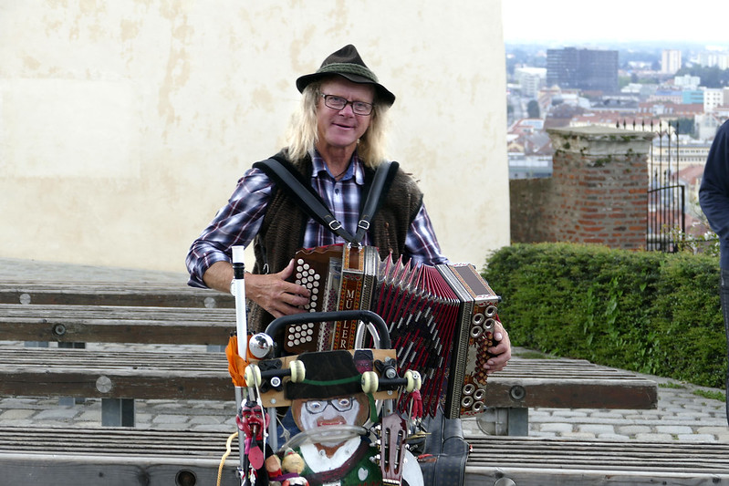 20. 奥地利的强大音乐氛围不光体现在有许多音乐大师,更体现在有众多的民间好手。只有丰富的音乐土壤才能产生出杰出的音乐大师。下面是在奥地利旅行途中碰见的街头乐手。这位是在维也纳Hochsttrahlbrunnen纪念碑附近拍到的。