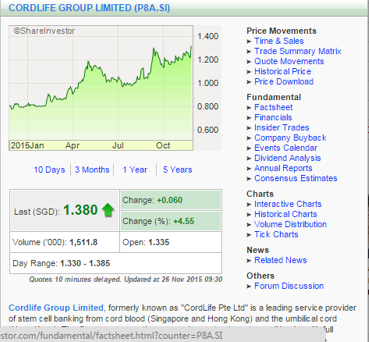 Cordlife's shares ended trading 10 cents or 8 per cent higher at S$1.32 on Wednesday amid heavy trading, prompting the query by the exchange shortly after market close.