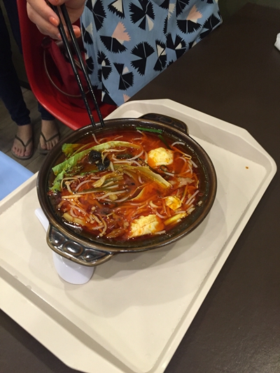 火锅米线(中辣), 没有传说中的那么辣, 据说是进行过改良了。 这一份是大家share的, 味道还行吧。
