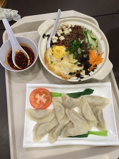 拌饭, 是老板送的, 说是新菜色, 在菜单上没有。 也是大家分享的, 味道还行吧。普通饺子, 看上去是饺子器做的, 味道一般吧。