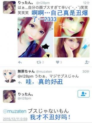 岛国网上一妹子晒自拍,抱怨自己丑哭,然后引来了真诚的路人评论……感觉成语词典"自相矛盾"旁边应该贴这个截屏↓↓