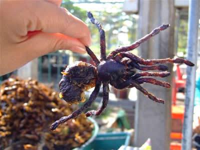 崖士蛮 • • 51638 次浏览南瓜的帖让我想起当年去柬埔寨,看到路边小贩叫卖一盆盆的油炸黑毛大蜘蛛,纠结了半天没敢买。如今追悔莫及。有人尝过吗?味道如何。网上搜来的图片。
