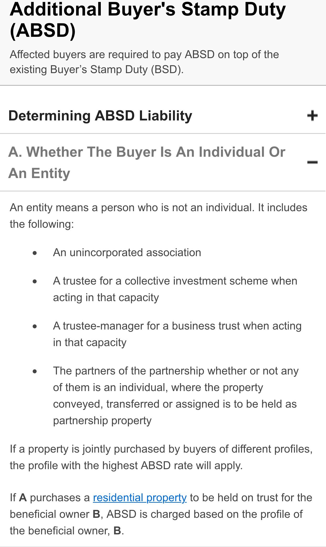 ABSD可不是只针对个人收,也针对entity收的。你的trust买房,trust 也是个entity, 还是要交absd, 你想到的,iras都想到了