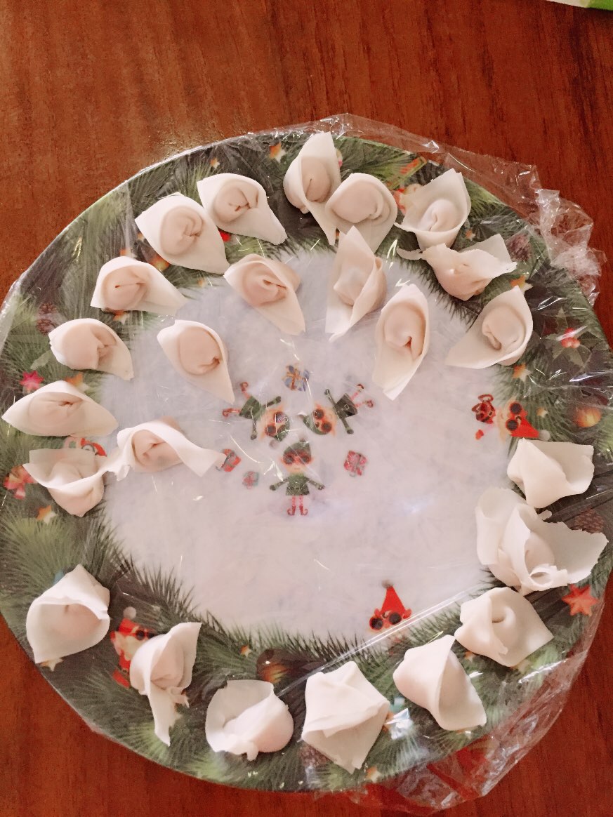 小馄饨 很简单的 就是超市买的皮 切成四份 肉馅不加盐 开包 这个是我的主意我妈包的 哈哈