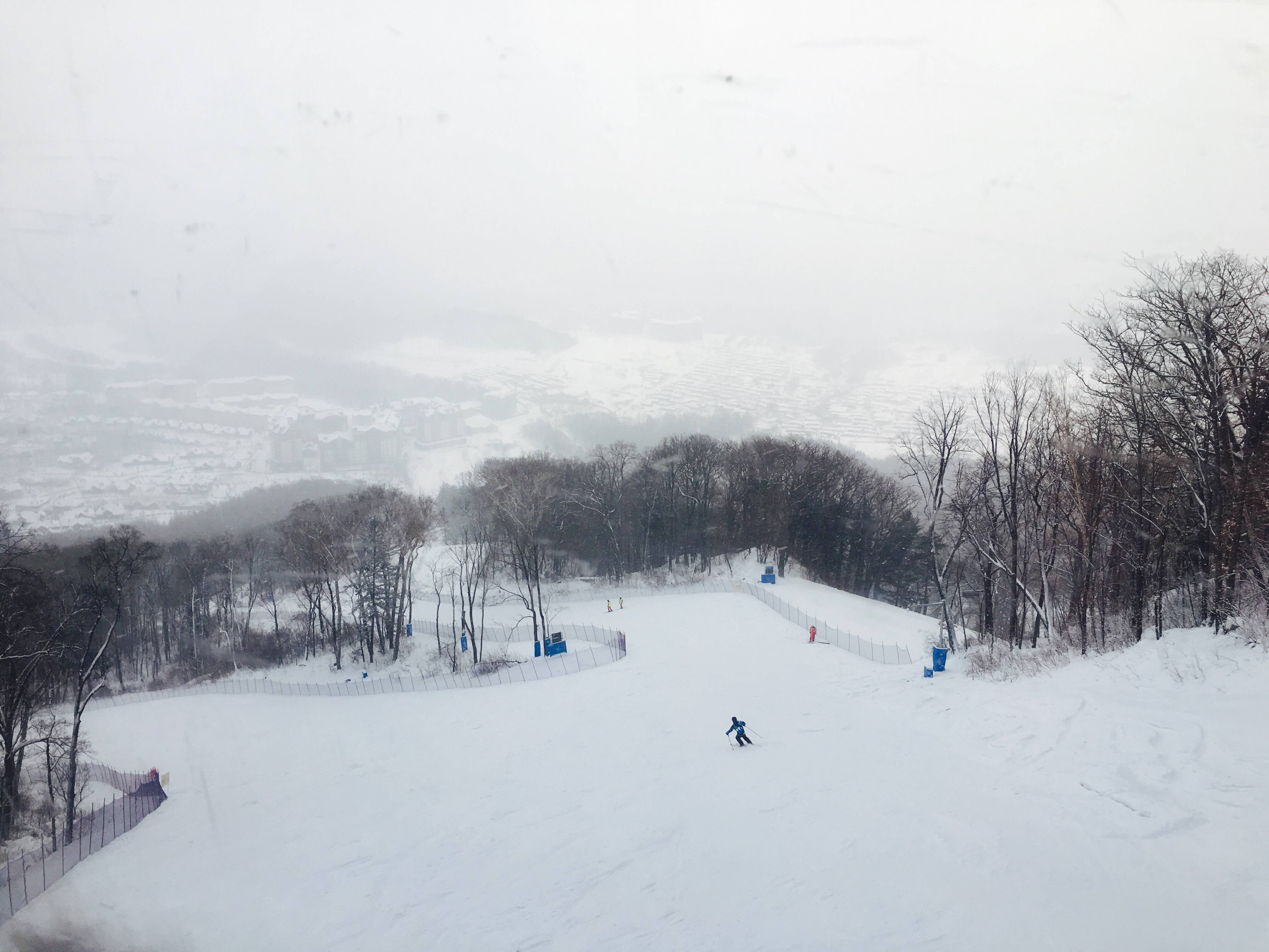 哦,第一天滑雪神马都没拍,惊心动魄的滑了一上午,一个没摔都偷笑了,根本没心情掏手机。下午敢在坡上停住了,手机却因为气温太低死机了。所以温馨提醒第一次去的朋友记得把手机放进有体温的内衬口袋,拍完后再放回保存它的体力,以免挂掉