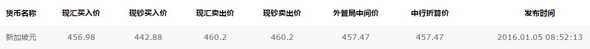 这个是新加坡分行的,按照上面的现汇买入卖出中间价是4.6579,和上面的4.5747相差好多啊。