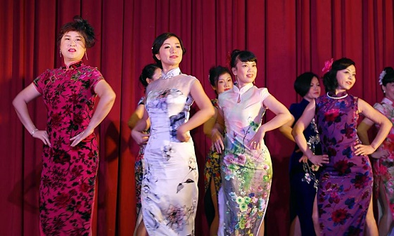 (图为在新加坡的上海人日前举行联欢会,会上表演旗袍秀)