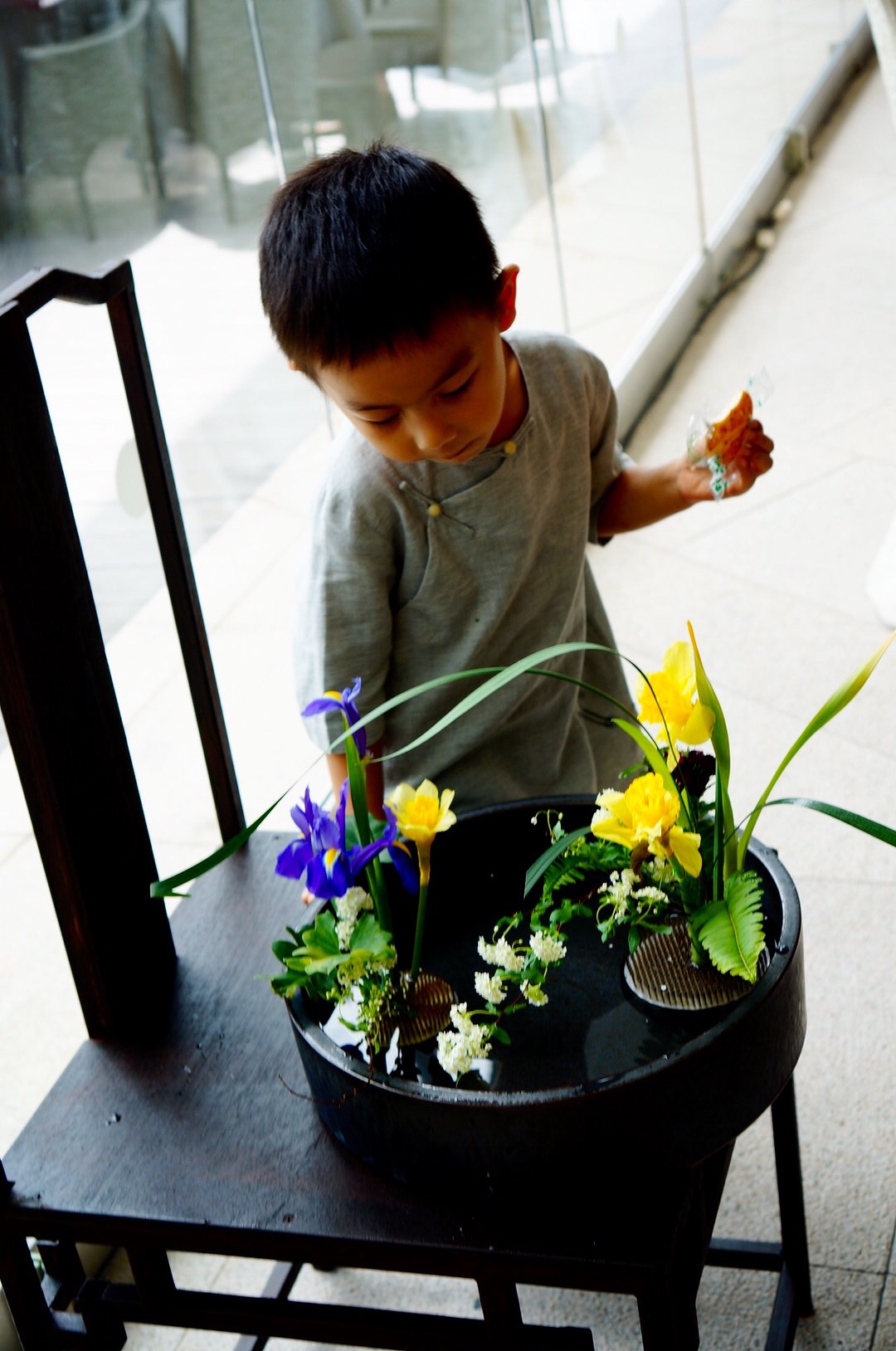 小花助#我插完了,他在一边唠叨要换叶子。我没理他,过来一会孩子和剪刀都不见了,又一会小家伙举着绿萝回来