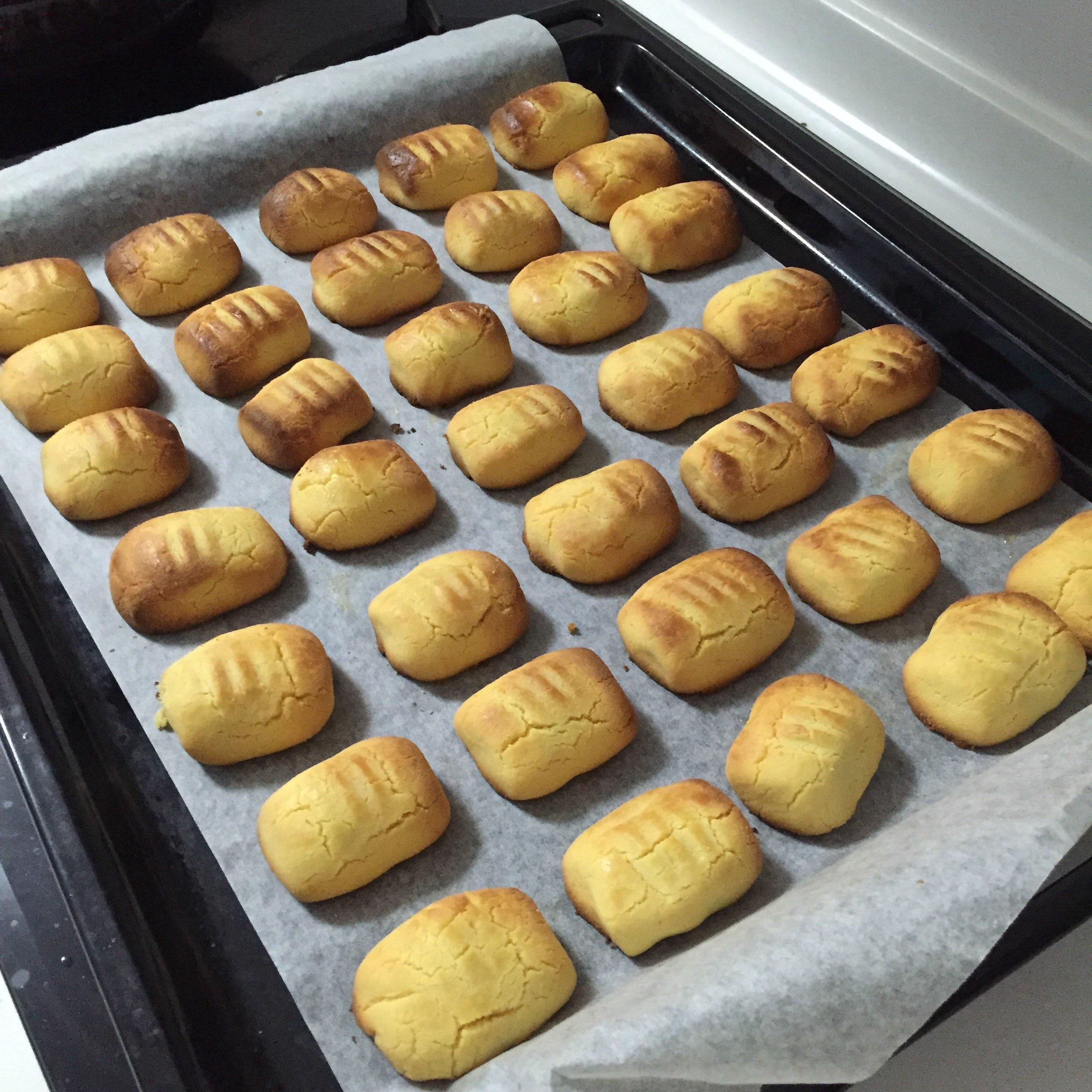 黄油常温软了以后和蛋黄粉一起和(因为没有专门的那种转的和面机器,所以我就直接戴一次性手套来和了~太油了=_=那触感不太好 哈哈)差不多有点发白以后加入奶粉和糖粉,和一会以后把面粉(我是到了差不多三分之二袋的面)和打好的鸡蛋倒进去,和到很像那种cream的那种状态就好了~不要和平常和面那样太硬啊~然后放一边开始准备黄梨酱就可以了~可以团成圆形或者椭圆形的,看自己喜欢~然后把面按成一片片的包起来就好了~(我弄的小枕头型的然后用叉子压一下让它有点花纹 哈哈~)