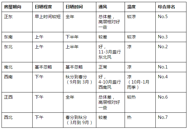 所以综合起来说,南北朝向的房子好过东西朝向的房子,西南朝向的房子又好过西北朝向的房子。