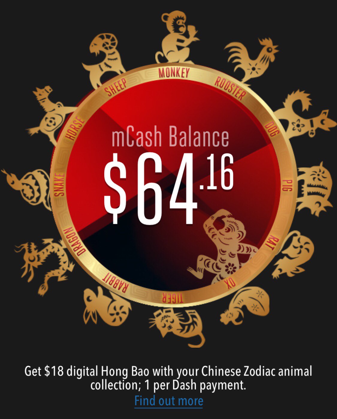 trim • • 50354 次浏览dash最近有集满12个生肖减18元的活动,每使用一次dash付款,得一个生肖,昨天终于集满12个生肖了。