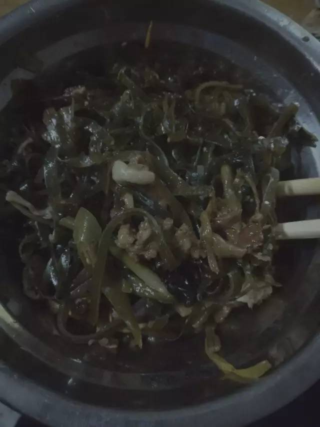 毫无卖相,也并不十分美味。里面有海带、木耳、黄花菜,还有一点点肉丝,这是中午来客人剩下的几个菜放在一起的,晚上母亲热了一下,就着一个馒头,这就是我的晚餐。这样的菜并不寒酸,谁家没有吃过剩菜?可如果把图片调一调,不比新闻里的菜好看许多: