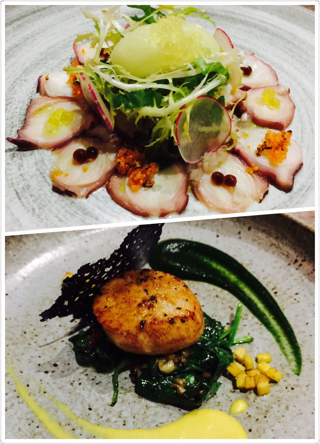 宝萝剥 • • 50264 次浏览隐在Raffles Hotel旁边小巷的精致小店,来了Bugis无数回,要不是这回情人节某哥想玩把浪漫,还真不会踏足。Menu很简单,就一页,但是该有的倒是都有,主菜选择包括了猪牛羊海鲜,还有比较少见的松露risotto~我俩分别点了个Set: 汤+头盘+主菜+甜点。餐前面包开场,比较特别的是有两种口味的黄油:海盐和松露。松露的我只能用“特别”来形容,BF倒是直说好香,吧唧吧唧全抹面包上了,一点没浪费。南瓜做base的汤,甜甜的很绵密,但是西式的汤有个统一特点,多吃几口就略腻,幸好只有一小汪,正正好。把汤解决掉就是前菜啦,我们点了鱿鱼+扇贝。一上来摆盘就把我征服了,美极了。鱿鱼被切成极薄的小片,同水萝卜芝麻菜土豆泥一起,配之零零散散的鱼子苹果醋橄榄油,怎一个妙字了得~不过因为刚看过星爷的美人鱼,嚼着鱿鱼,各种脑补罗志祥的腿~扇贝造型颇有八卦风啊,BF干掉了,我尝了一小块,感觉还是罗志祥…阿不 鱿鱼腿好吃~接下来就是千呼万唤始出来的主菜啦,选了不用另外加价的小羊排+猪肉。羊排强烈推荐Medium rare! 带着血丝略吓人,但是真的好鲜美,完全颠覆了我对羊肉的认知哇~鲜嫩的肉搭配香浓的芝士,还有神奇的手工pasta和芝士脆片,简直perfect!对面某哥的猪肉的话么,目测就是德国烤猪蹄的精致版,远远木有俺的羊排惊艳~最后是本人感觉全场最精彩的甜点: Dark Passion+Decon Cheesecake!概括下的话,就是各种丰富,各种隐藏技能~具体描述么,哈哈,尝了才知道