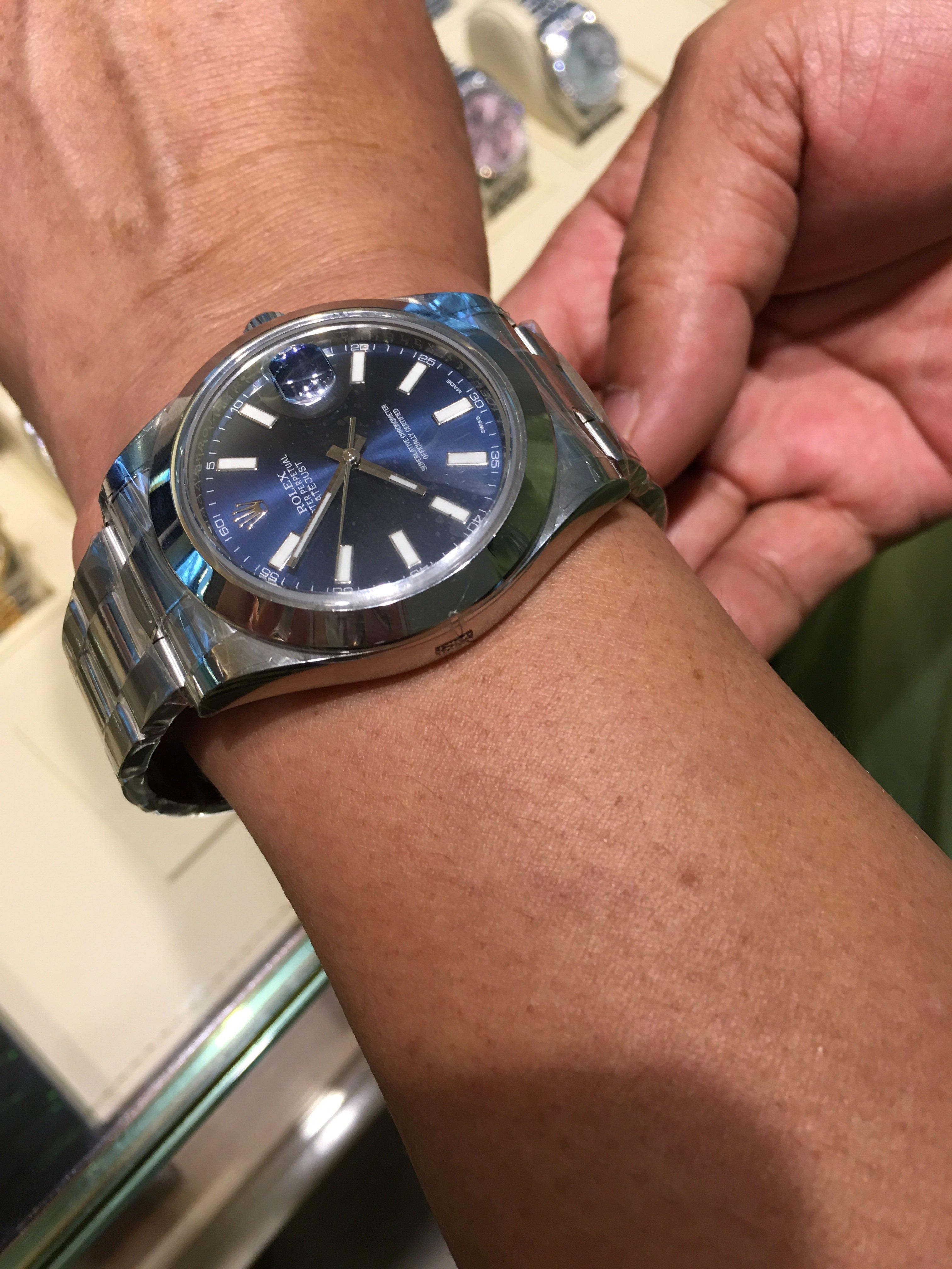 你爸爸看中的那款是劳力士新款日志型,Date Just II,41mm, 116300,是劳力士最近比较有代表性的款型,适合年纪大一些的人。而且表径都不一样,这款稍大点。