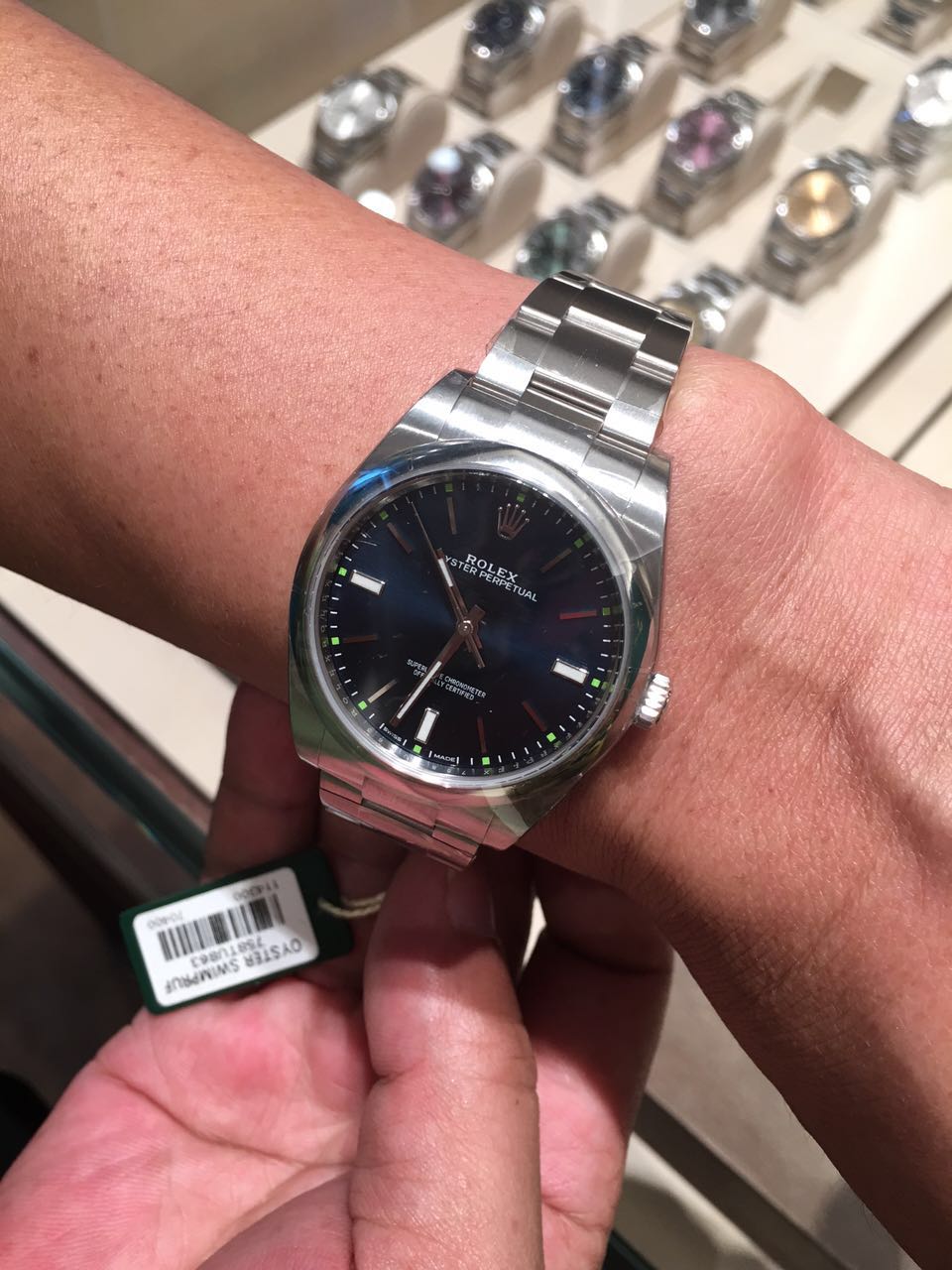 这是劳力士蚝式恒动入门款,39mm, 114300,应该是蓝面,人民币三万左右。39mm, 114300,应该是蓝面,人民币三万左右。