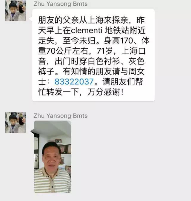 2月29日,一位网友po出朋友的父亲来新加坡探亲于2月27日走失,引发了全城热心网友的转发和帮助。