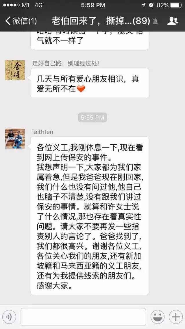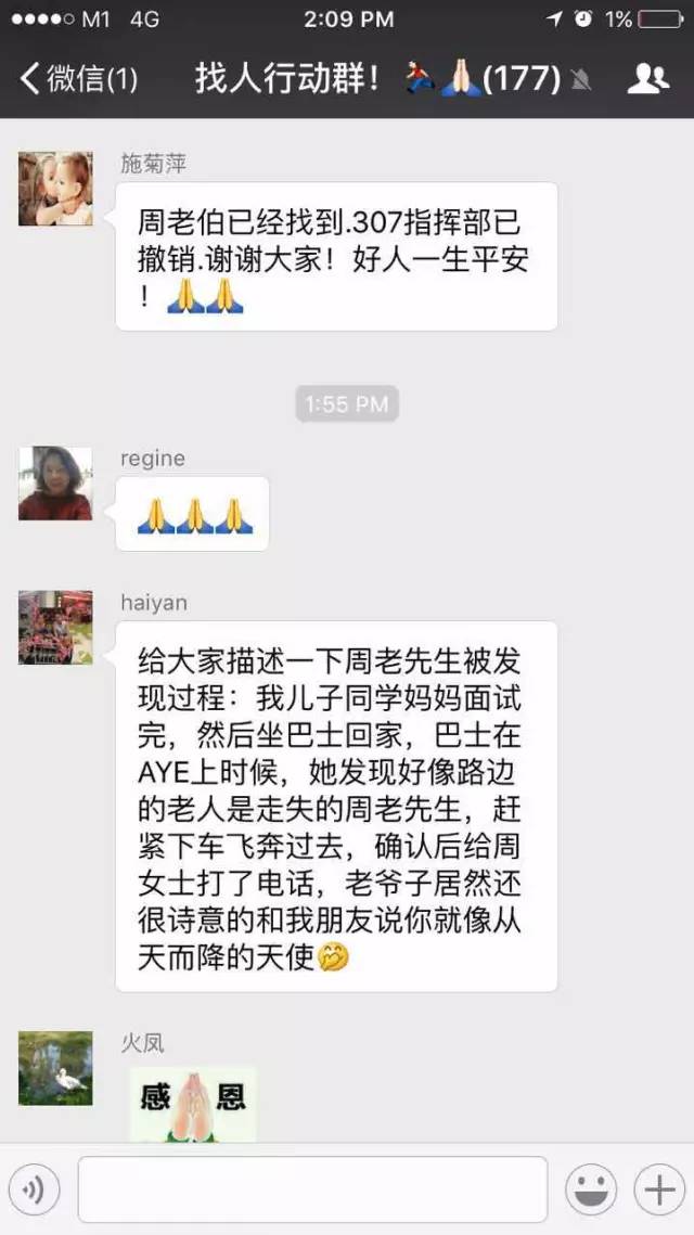 好消息!今天,一义工的孩子的同学的妈妈在pandan road附近发现走失老人并给周女士电话。电话里确认是走失的老人!义工群沸腾了……