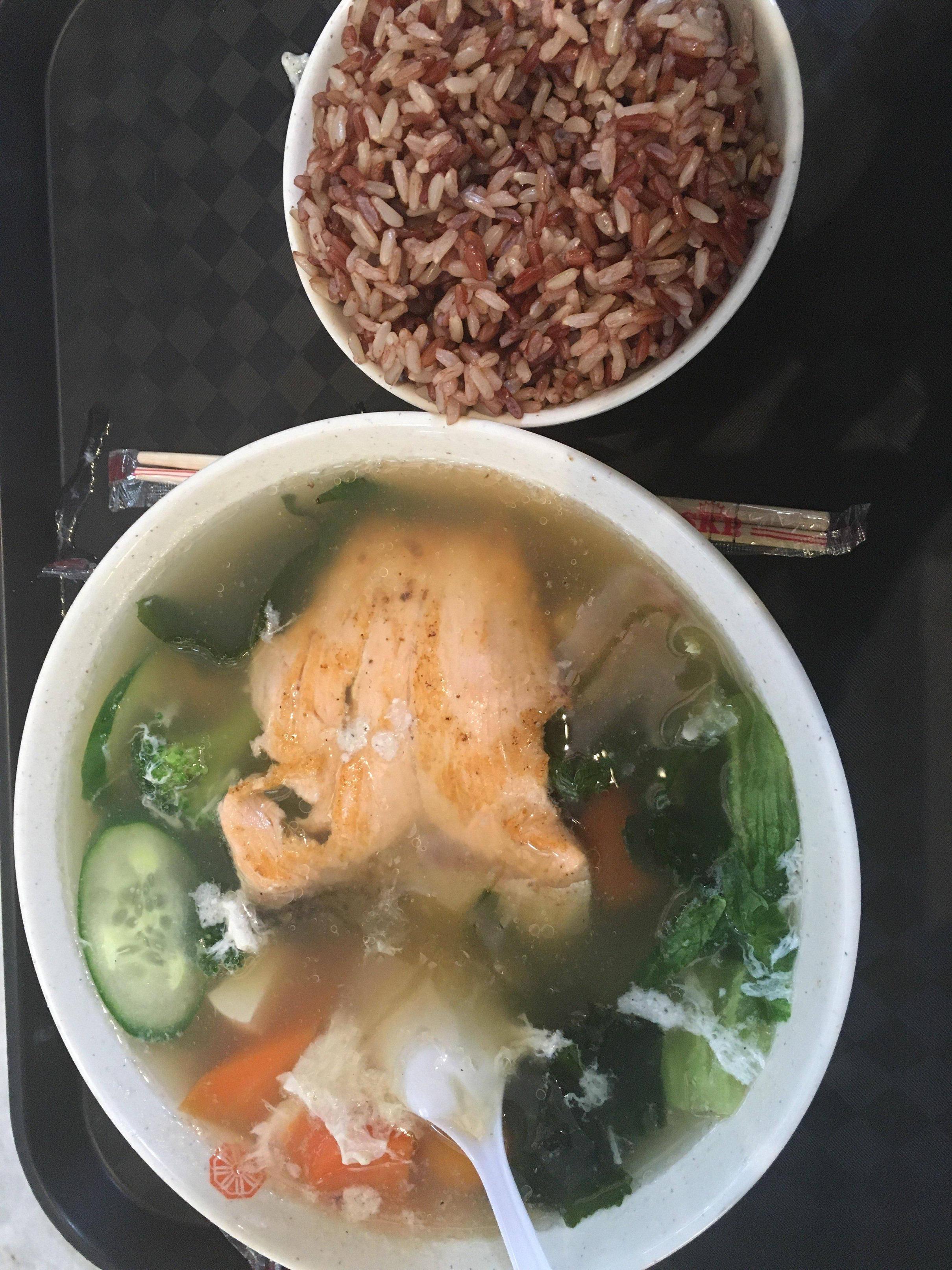 jiatong32 • • 49711 次浏览松鹤的糙米或荞面,搭配鱼或肉或汤,价格不贵,量又足,这一份才五块!还可以打九折!小哥说炸鱼没了,可以换成三文鱼不加钱!重要的是收银小哥是小鲜肉一枚,太帅啦!