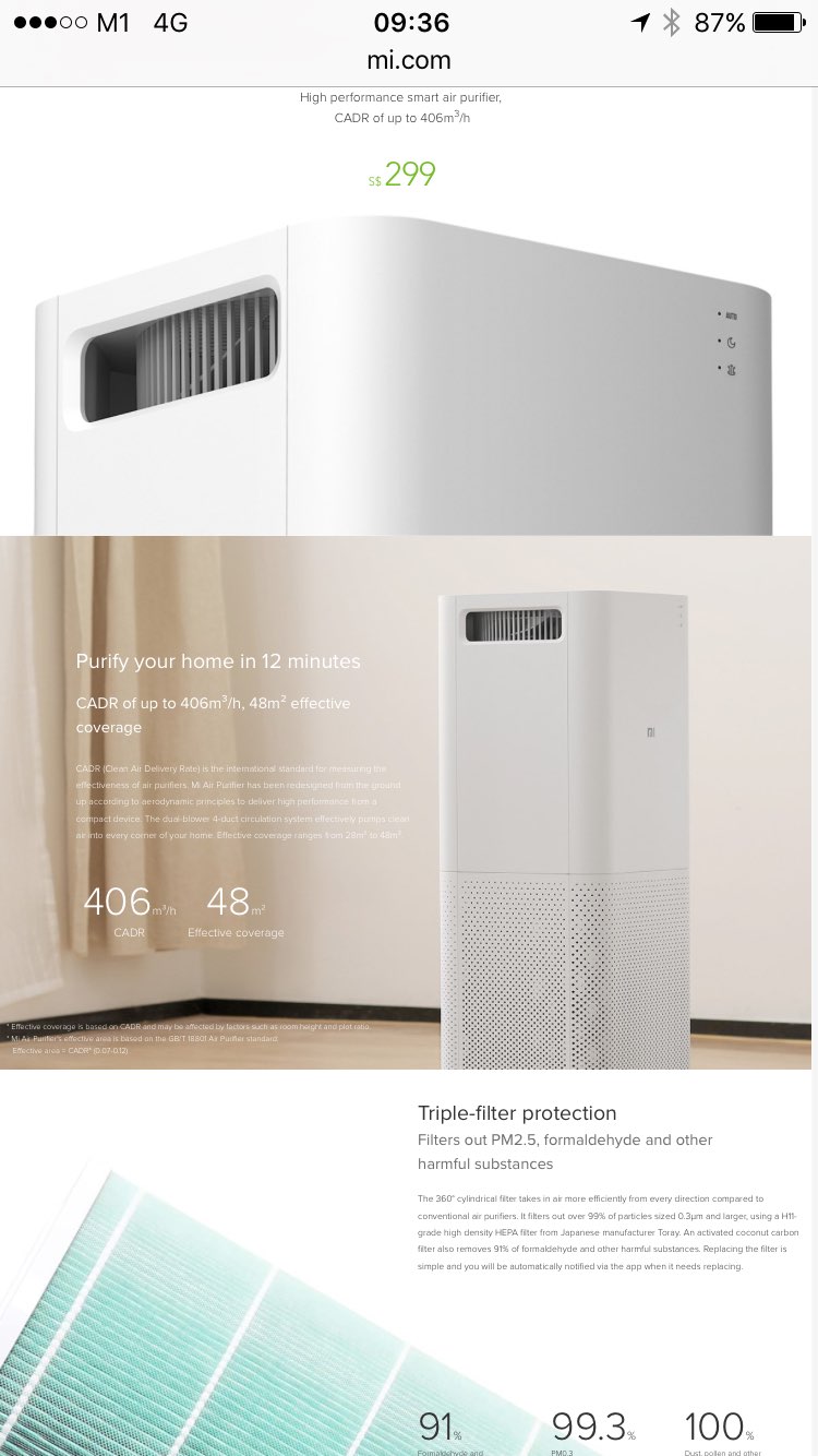 小米在新加坡官网推出空气净化器