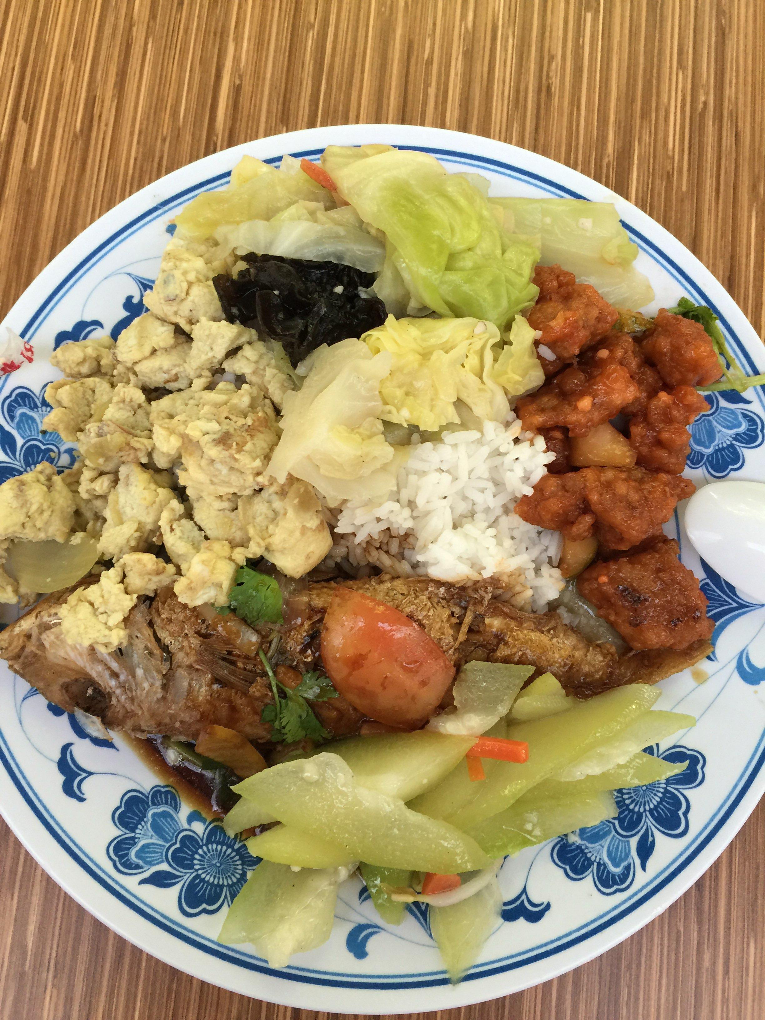 wasabi7 • • 49645 次浏览榨菜饭:一整条鱼,三荤二素4.50,面2.50