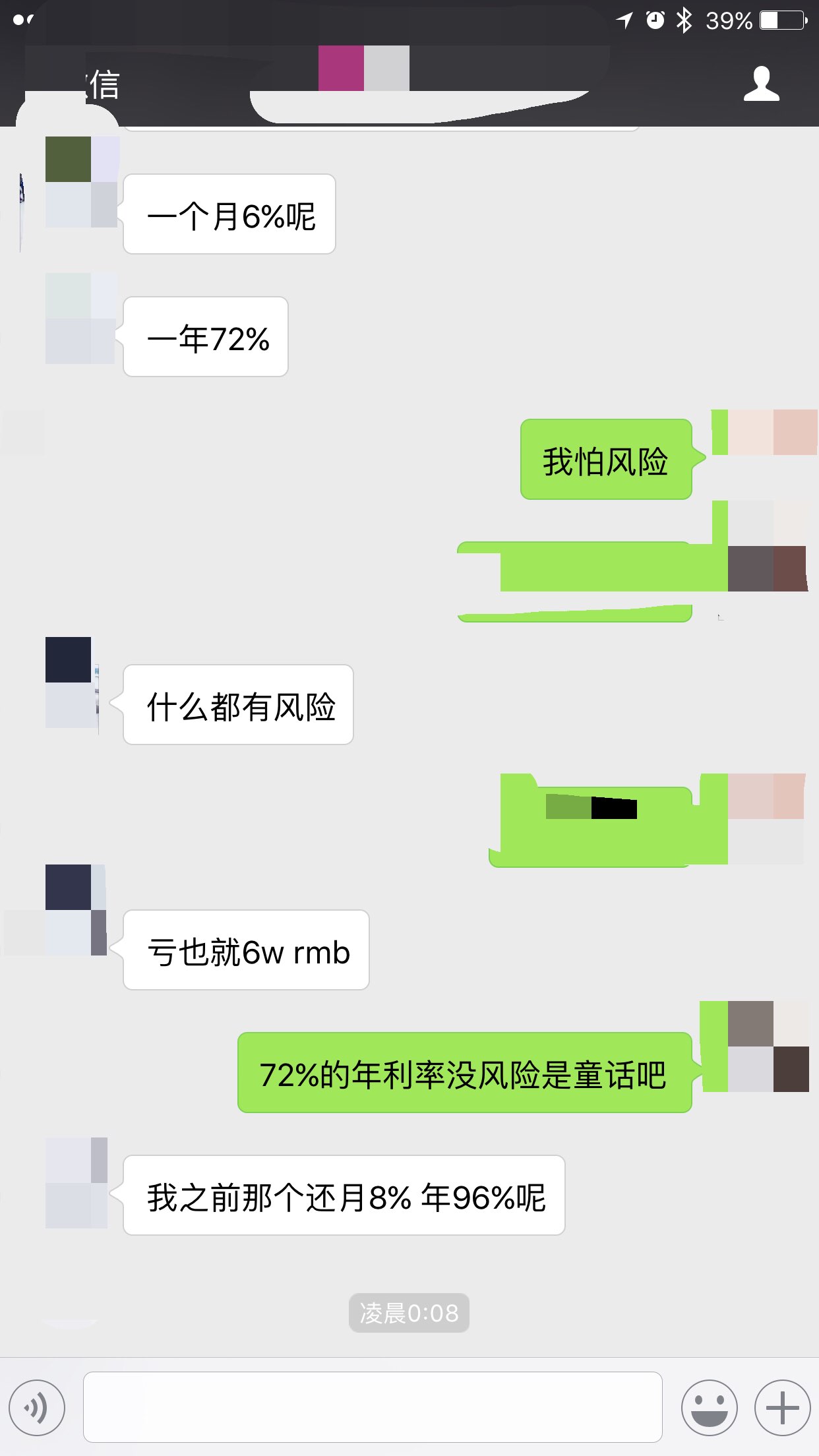 熊维妮 • • 49614 次浏览今天有人推荐我去买这个投资。一开始我还认真看他网站。可是写的太模糊了。看不出到底投资什么。可是友人提出回报率高达每月8%!年利率96%!一说这个我一个激灵就清醒了。天方夜谭的。然后说让我凑一万美元。我就换个话题切换了主题。不想友尽。