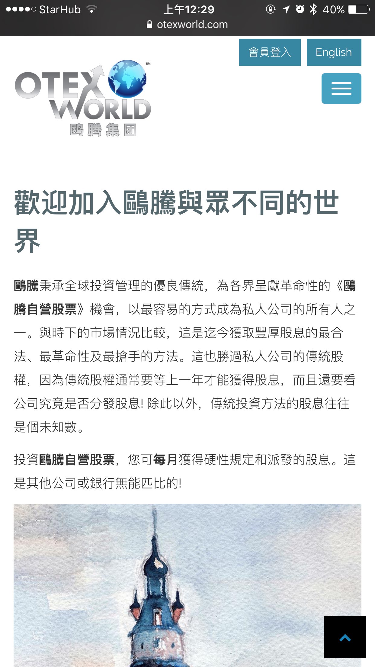 小心!别跌入老千的圈套OTEX WORLD 是 MAXIM TRADER 马胜老板 Dr 。Charles最近开的。他们以高利润来骗取投资者。花了过百万马胜投资者的钱来搞OTEX WORLD 开幕典礼。世上没有那么好赚的投资哦。他们以传销方式来吸引传销员来帮他们找新投资者。他们也没有任何投资执照。肯本就是以金字塔的方式来炒作。千万别受骗!!!OTEX WORLD 是 MAXIM TRADER 马胜老板 Dr 。Charles最近开的。他们以高利润来骗取投资者。花了过百万马胜投资者的钱来搞OTEX WORLD 开幕典礼。世上没有那么好赚的投资哦。他们以传销方式来吸引传销员来帮他们找新投资者。他们也没有任何投资执照。肯本就是以金字塔的方式来炒作。千万别受骗!!!