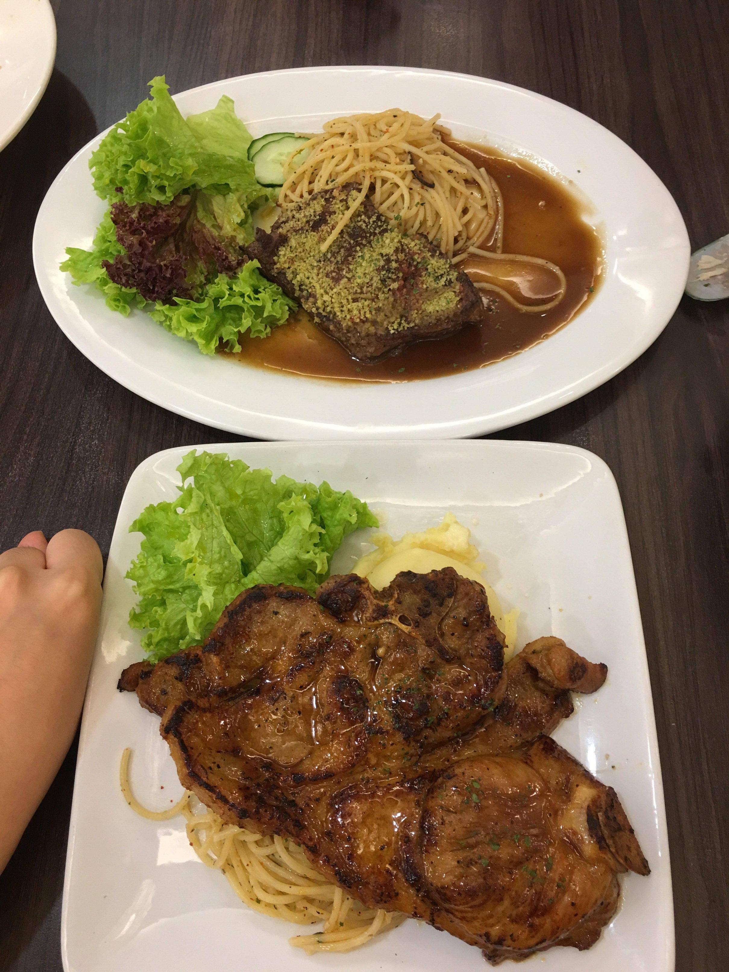 而且western一般都比较贵,这个价钱上吃到这种水平的东西,lz做梦都在流口水呢这次的牛排是比较厚的所以看起来不大,我当时也有问服务生,回复说牛排都是有称过的,每份160-170g。(你看下面的猪扒就知道他家分量了)牛排无限好吃!五分熟的口感又软又韧又嫩,汁水丰富但是完全没有血水!然后那个意面是真心棒,也是口感无敌好,爽滑弹牙,完全不会太软/太硬而且品质非常稳定,每次都是辣么好吃