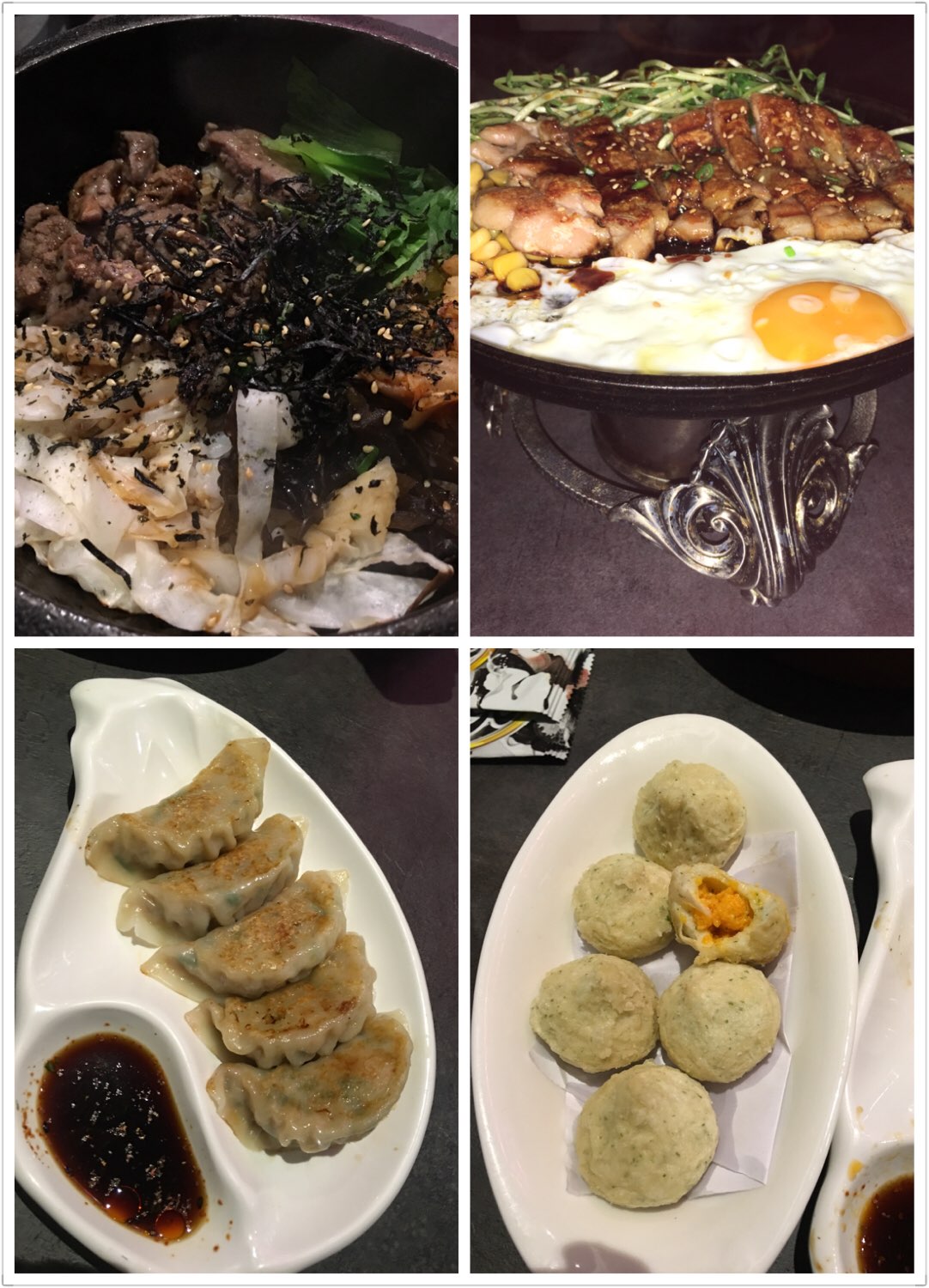 图片坐上是石锅,右上铁板,下面是煎饺和鱼包蛋
