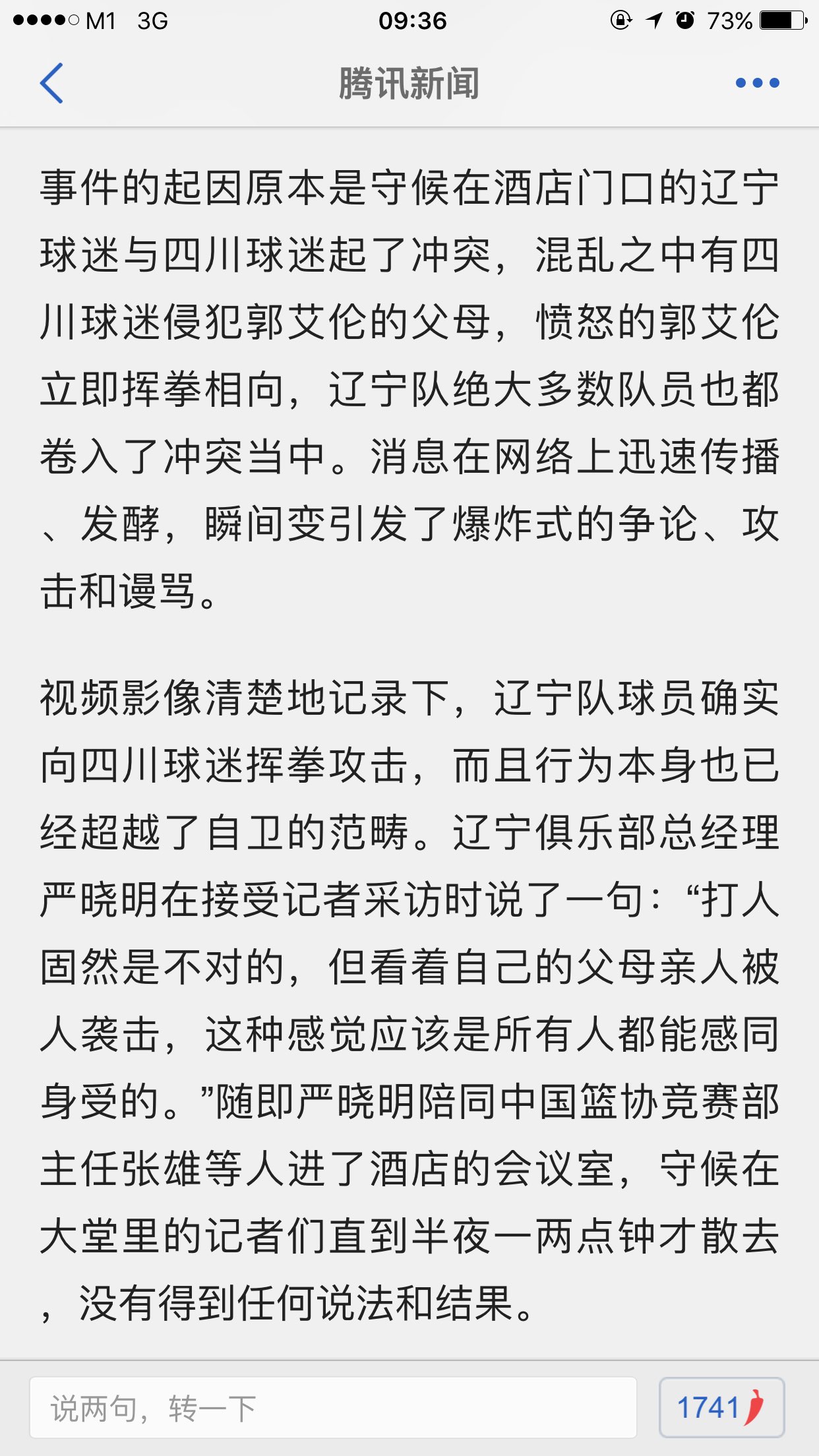 随行在郭艾伦边上的一个红衣男,向四川球迷挑衅,并双手大拇指朝下,引起四川球迷不爽和反嘴。再然后,据说是红衣男先动手到了一个四川球迷(未考证)。再再然后,就是一堆四川球迷暴起围打红衣男。最后,就是辽宁球员加入了大混战。