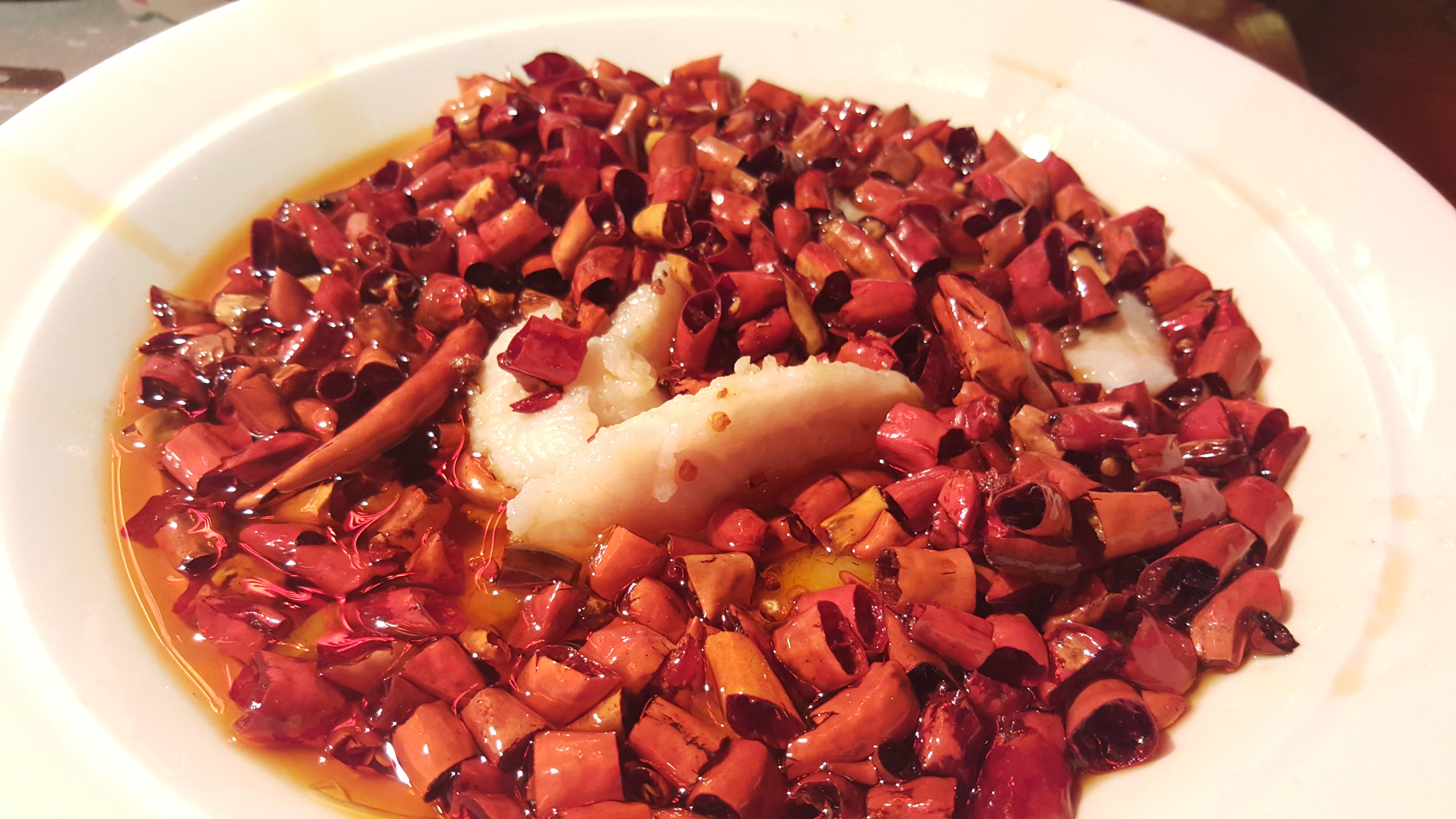 青豆泥配上红辣辣的沸腾鱼绝配,我们吃的当下还有人过来问我们是什么菜,她们也想点。。。。<br>