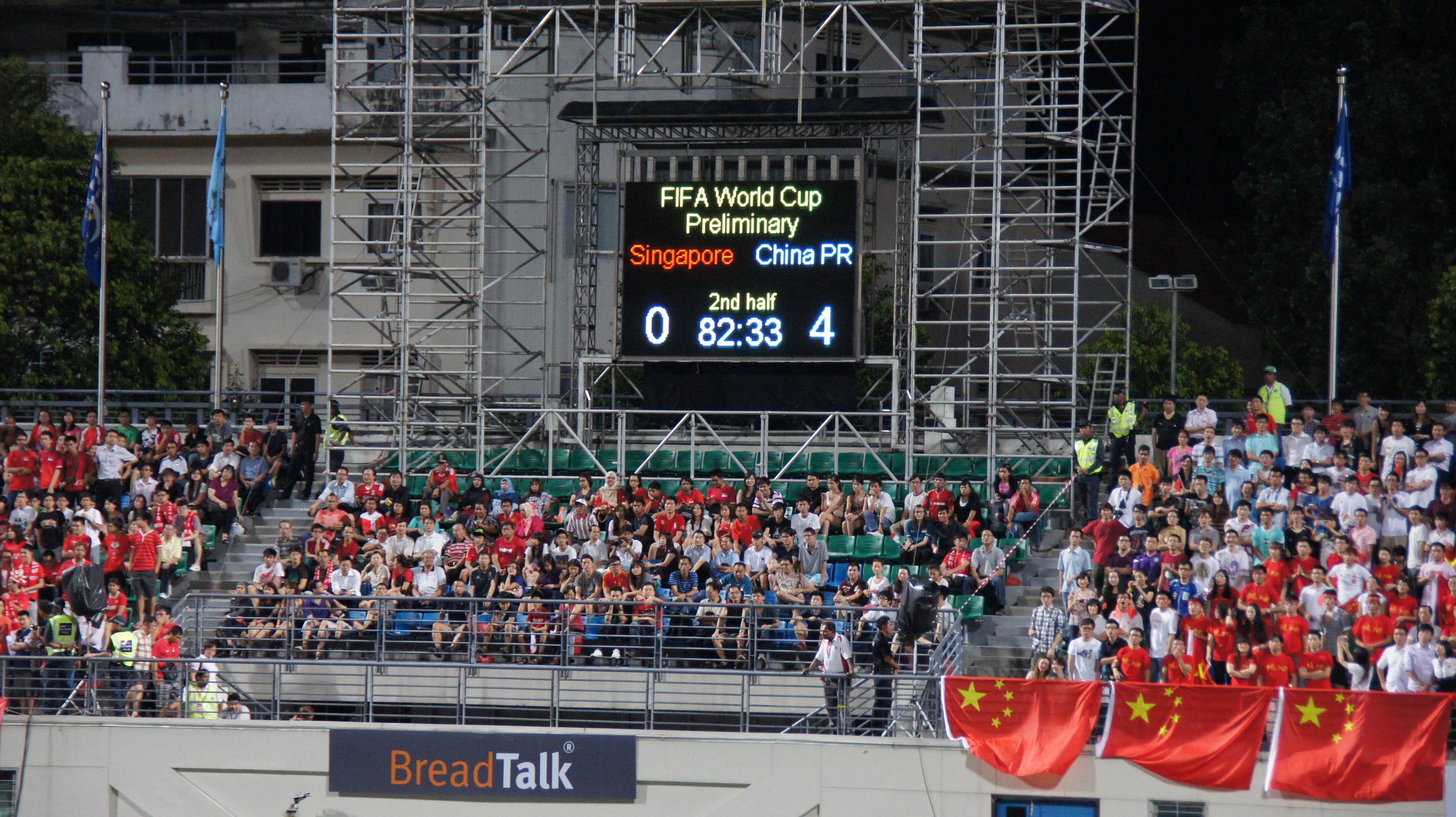 2011年11月15日,中国队客场4:0胜新加坡。虽然结果已经无关紧要,但这是第一次现场看国家队比赛,跟看电视直播的心情那是绝对不一样的。