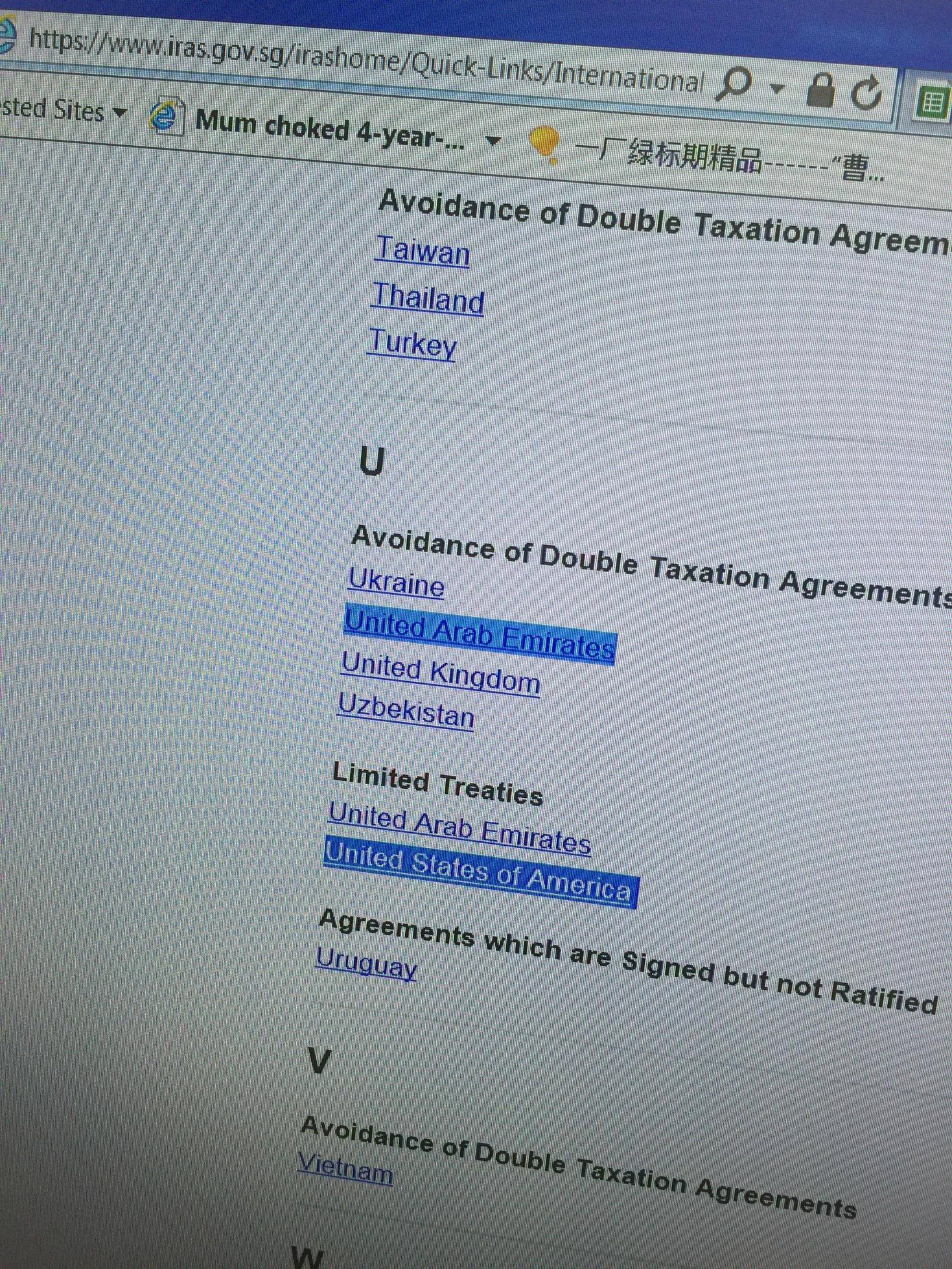 原因是我中午研读了一下iras上的DTAs,坡县和美国是limited treaties,tax exeption仅限于 shipping and aircraft income; air transport...