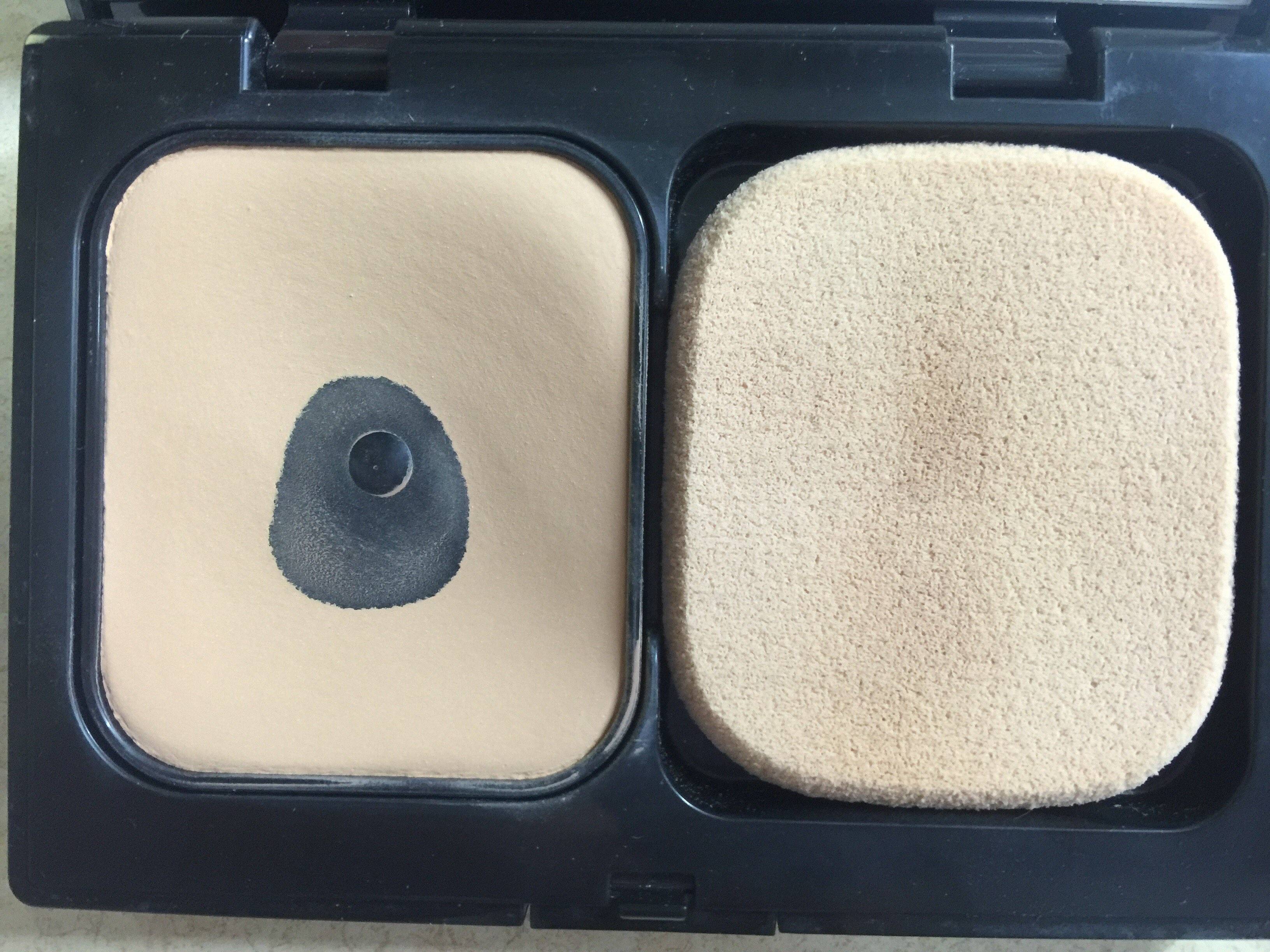 这块评价挺两极的,但作为一个混油皮这是我心中的no. 1!已经停产了,去年SALE我囤了一块,这块用到这样大概大半年吧,我不经常化妆,一周用两三次左右吧?一般和湾湾版sofina隔离一起用。基本不怎么脱妆啦,对我来说补妆也不会斑驳。这块刚上妆时其实还是和脖子有一丢丢色差,而且妆感稍重,但是很快就变自然啦! 还算是比较适合我的颜色,我觉得不容易斑驳和选对颜色也有关系吧。