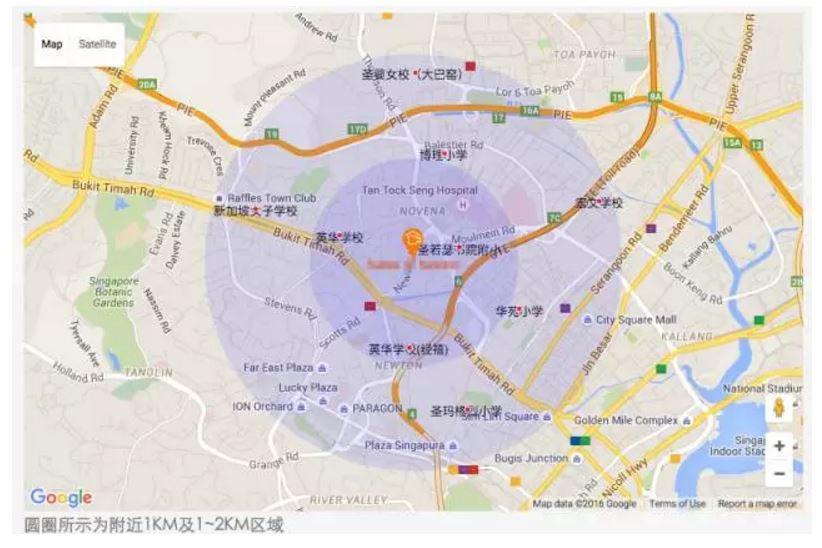 由于小一报名是按照孩子住家在学校“一公里内”、“一至两公里”以及“超过两公里”的顺序来抽签,所以,新加坡房地产越是靠近热门小学越热门,这就是所谓的“一公里溢价效应”。