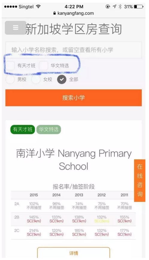 为了方便大家选择学校,看洋房在学区房查询中提供了天才班和华文特选的过滤器,同时还有各个学校的历史抽签数据以及周边楼盘信息。请点击文末阅读原文查看。