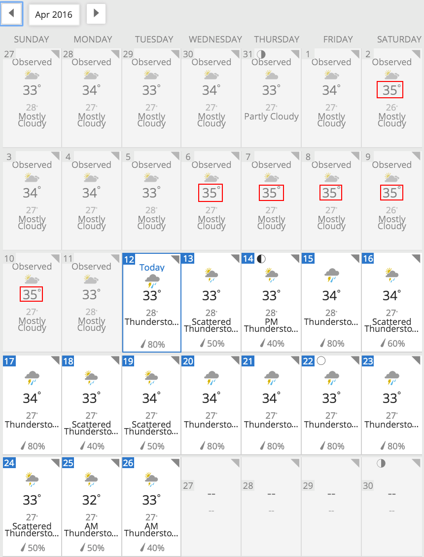 这些最高温度估计是按全岛平均气温算的。今天iPhone自带的Weather App即时温度在下午2点时还是达到了35度,也超过了这个app自己预测的上限34度,而且其实好像天天如此。今天iPhone自带的Weather App即时温度在下午2点时还是达到了35度,也超过了这个app自己预测的上限34度,而且其实好像天天如此。