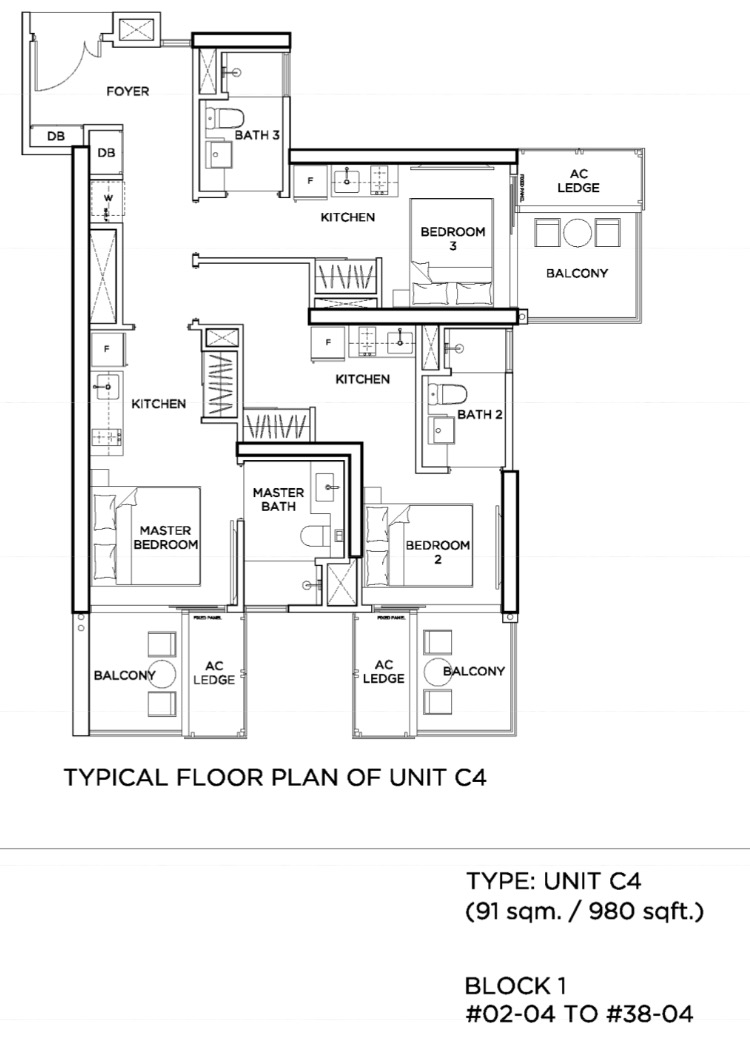 3钥匙单位980sqft / 91 sqm投资很好投资很好