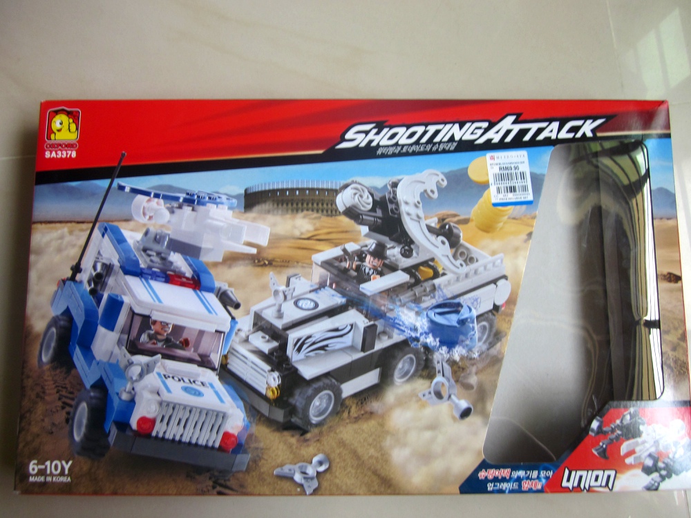 韩国第一积木品牌,这边kiddy palace里面有得卖,价格比国产的贵一些,比lego要便宜很多。国内有很多积木厂家模仿它的设计。这个积木质量也很好,小积木上不像lego和古迪那样刻有自己的logo,搭建出来的车子很沉重,结实。