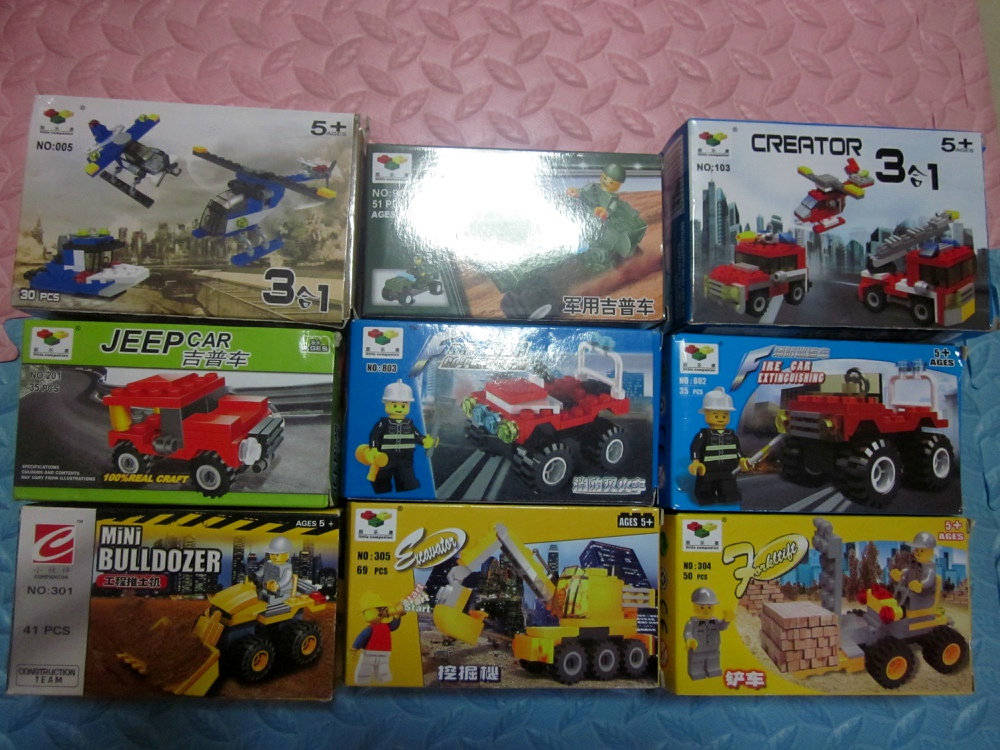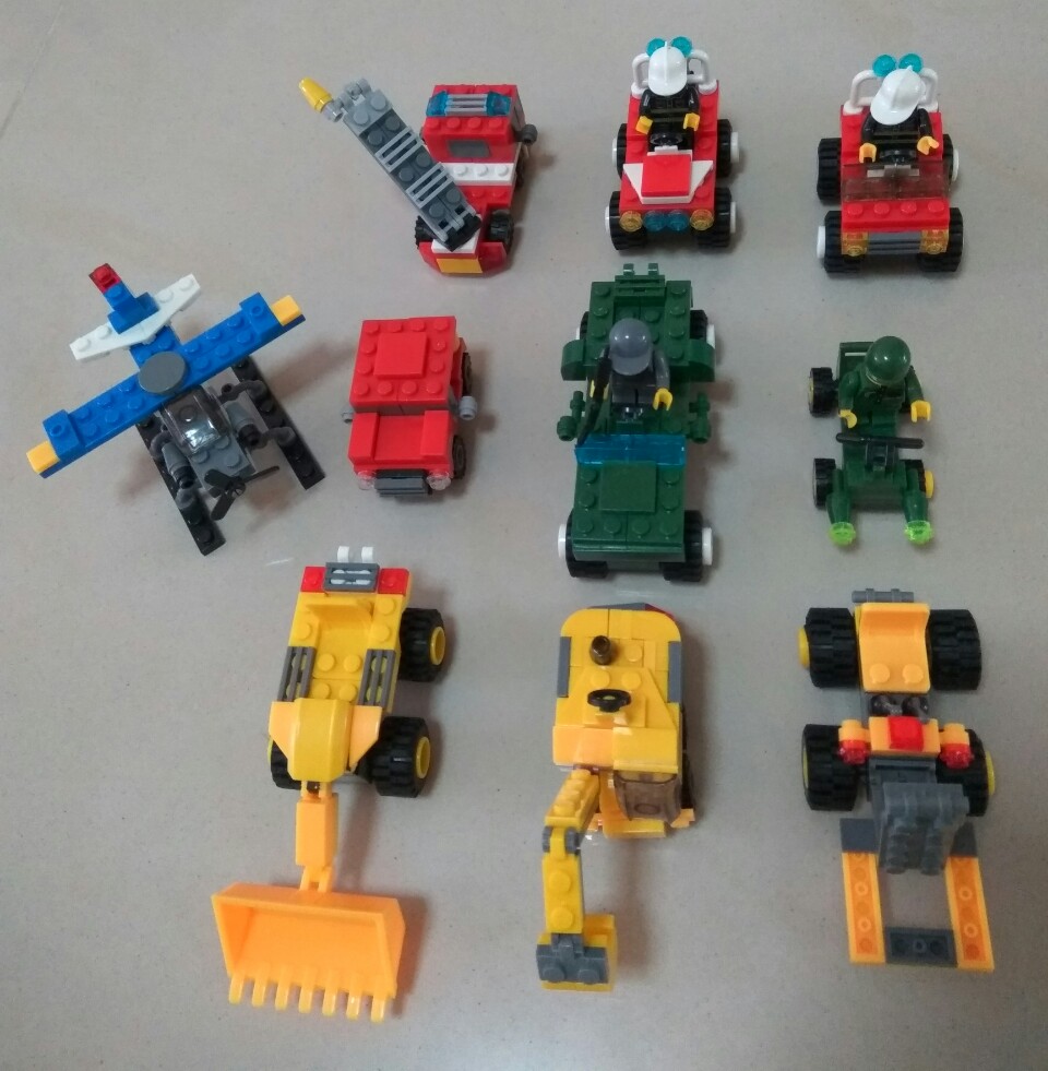 这个牌子主打这种小套积木,积木质量不错,色泽也还行。当然,比起lego来还是有差距的,但是两三块RMB一件的价格,也不能要求太高哈!