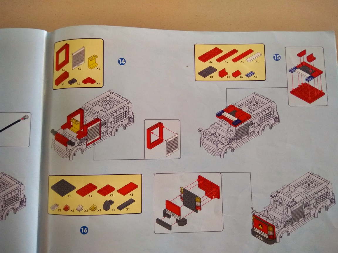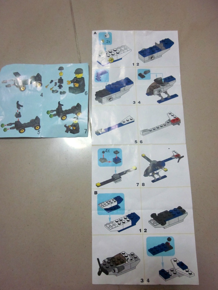 娃四岁生日时候送了一套lego给他,他高兴的要飞起来了!一盒里面有400多片小颗粒,倒出来一大堆。我们开始还担心小朋友看不懂说明书,会没有耐心搭玩,没有想到他居然能从早上一直搭到晚上(除去吃饭睡觉时间),说明书大部分也能够看得懂。这里不得不说下lego的说明书做的非常详细清晰,每一个步骤用到积木数量很少,小朋友很容易上手。