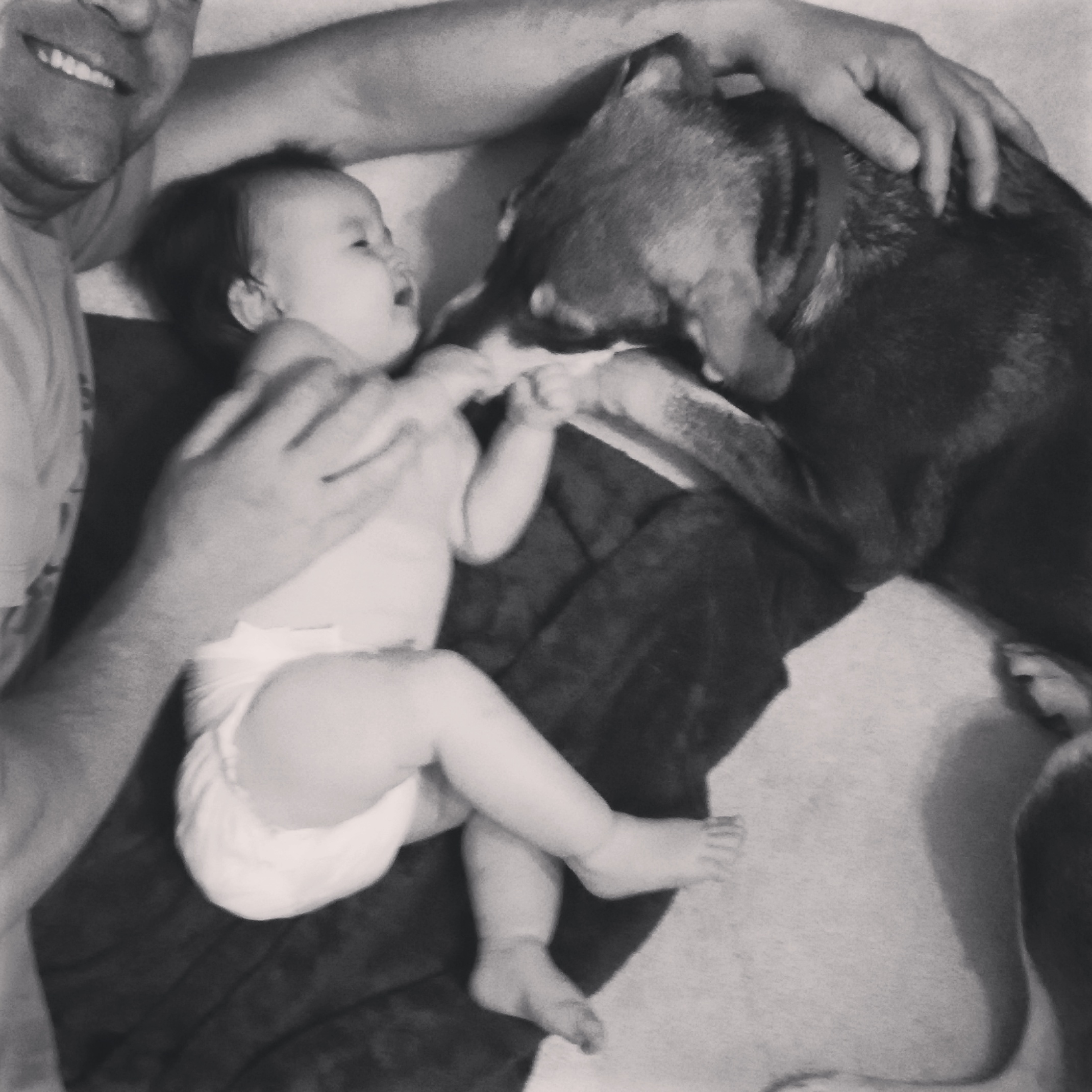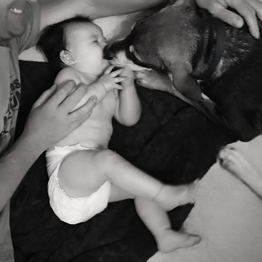 娃娃真好看,而且和狗狗那张太有爱了!狗狗最喜欢小孩孩了